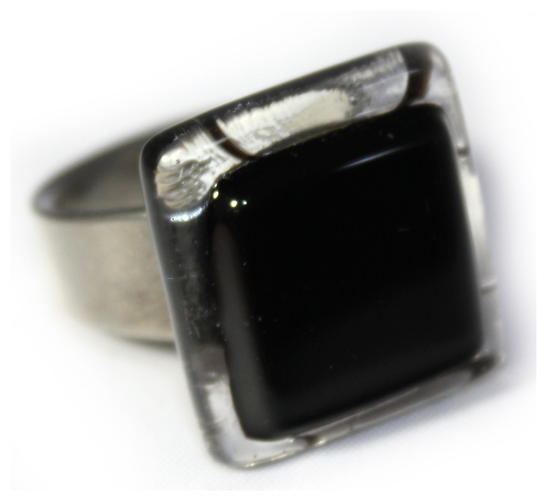 Adjustable glass and pewter ring, signed Cré-Art on the band.