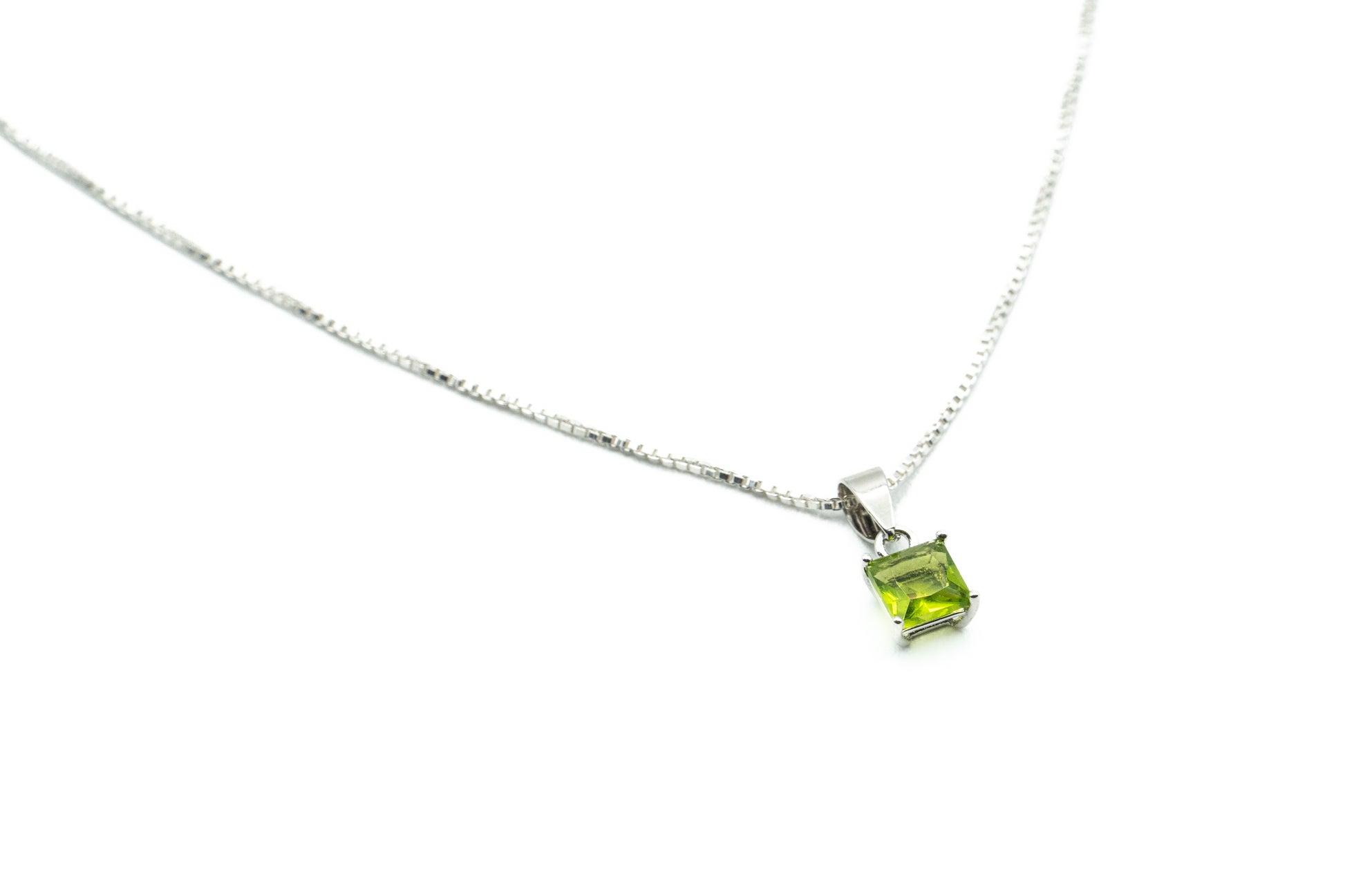 Necklace - Square 3mm - Lime Green - Red Silver 9.25