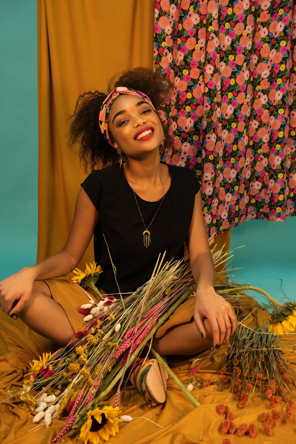 Necklace made of brass and ceramic pieces, handmade in Africa.