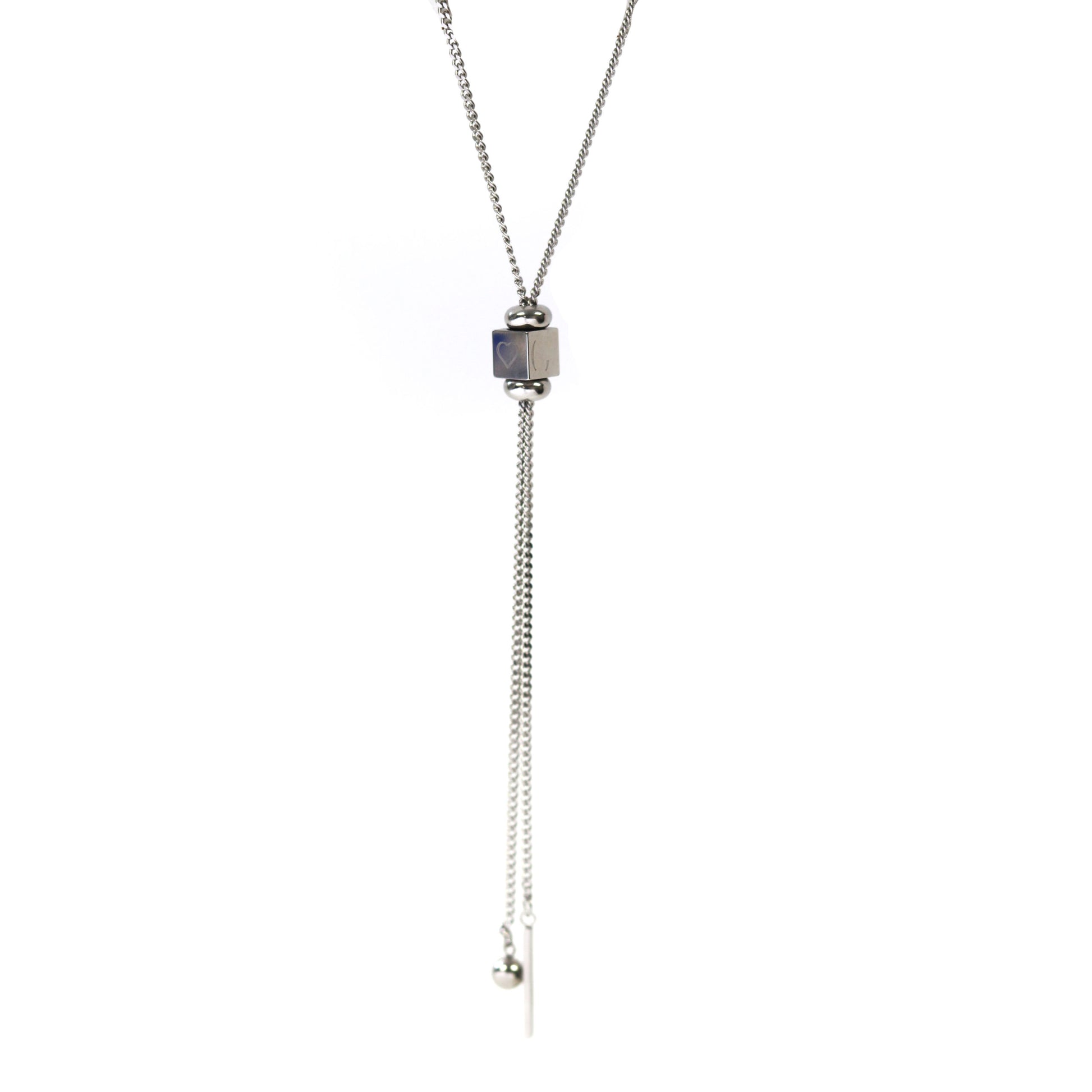 The Cubik necklace is equipped with a cube and stainless steel pieces with the possibility of inscribing a maximum of 4 letters on each side.