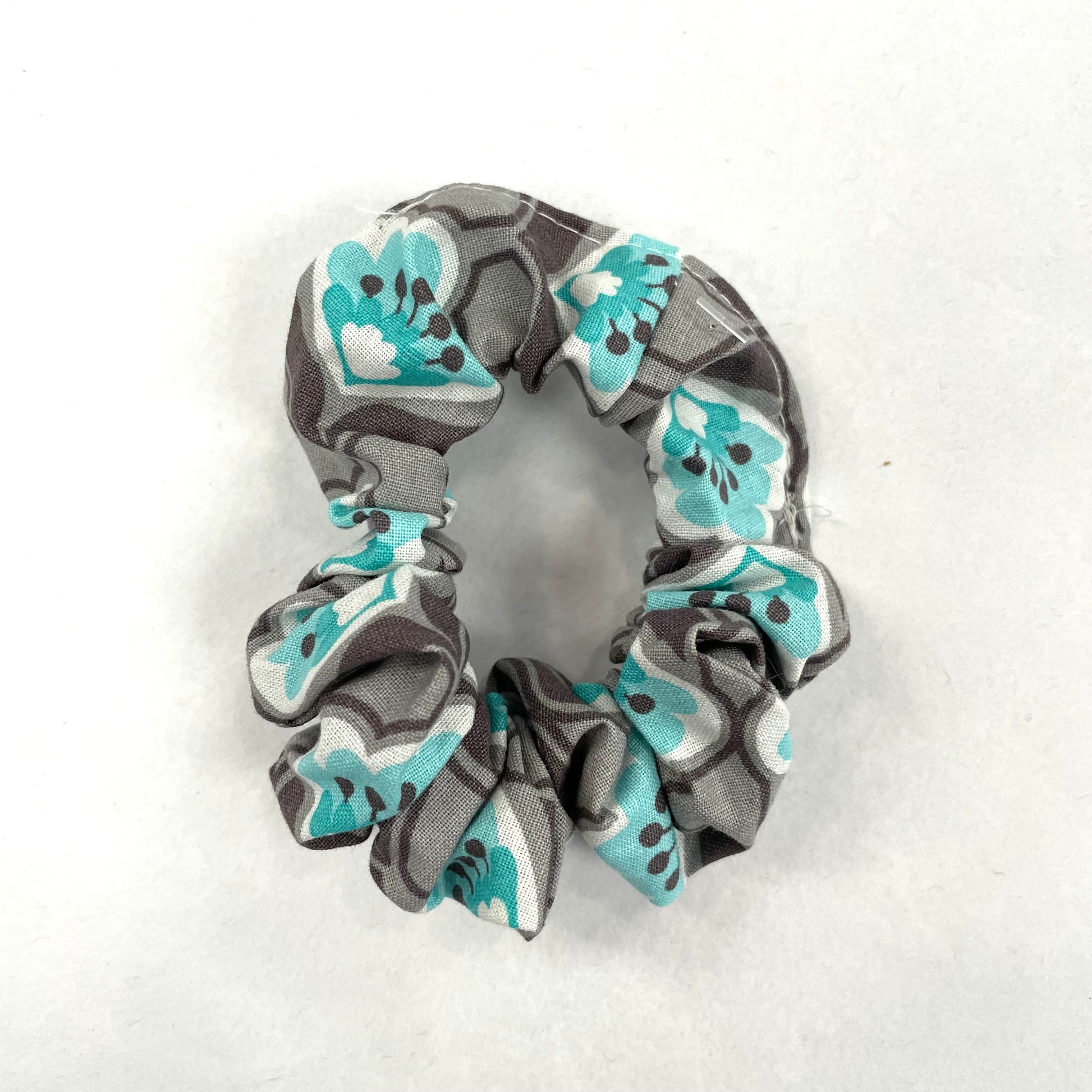 Grey Scrunchie Turquoise Flowers - Red Sofa