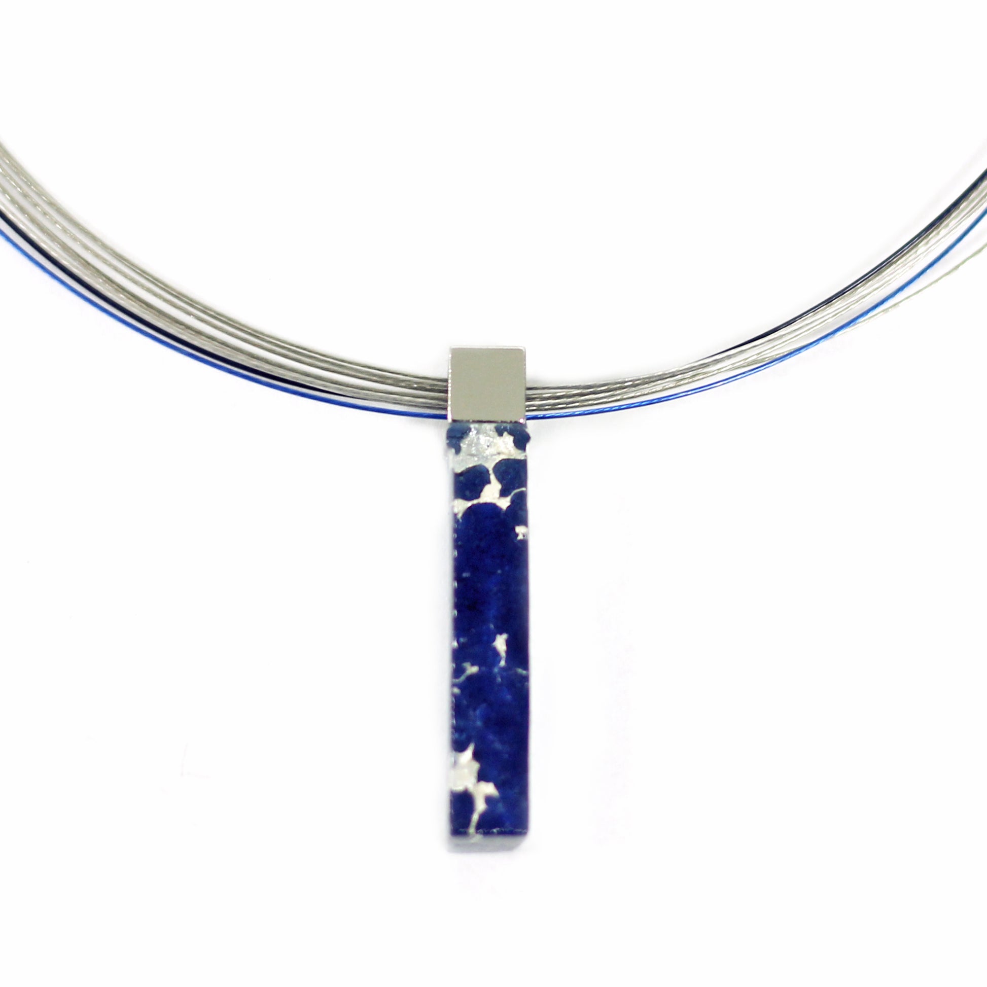 Glass and stainless steel necklace on stainless steel wire (hypoallergenic) covered with colored nylon.