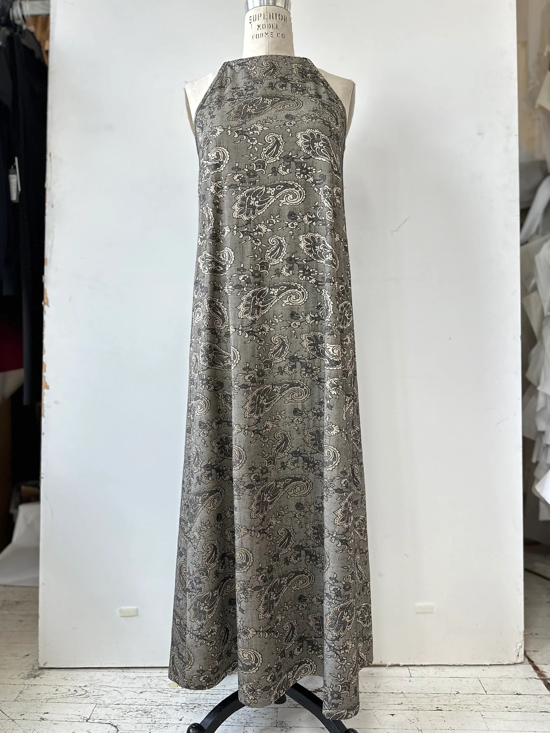Opt for an elegant yet fluid look with this exclusive maxi dress! Its halter neckline offers a classic silhouette that you can adjust close to the neck or looser depending on how you want to style it. Depending on how you accessorize this minimalist garment, you can create an elegant, more relaxed, or even bohemian look. Thanks to its classic print and hues, it's a timeless piece that can be paired with a variety of colors, making it a versatile addition to your wardrobe.