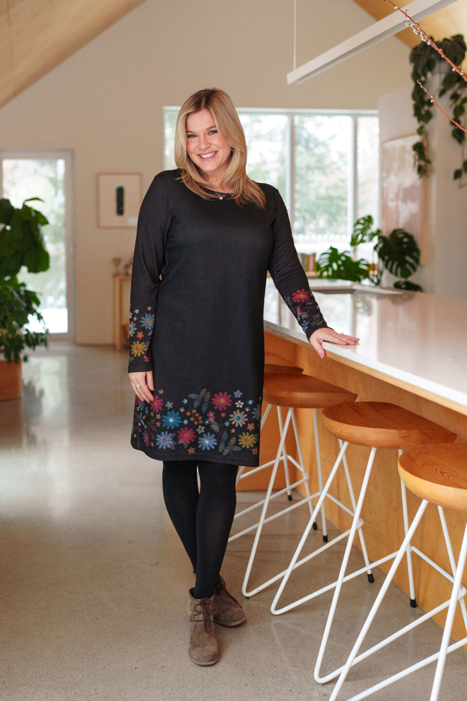 Turn inside out, wash on a gentle cycle in cold water, and hang to dry. Iron at a low temperature if necessary.