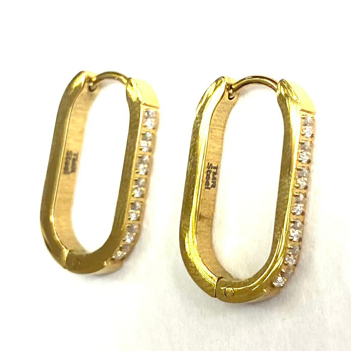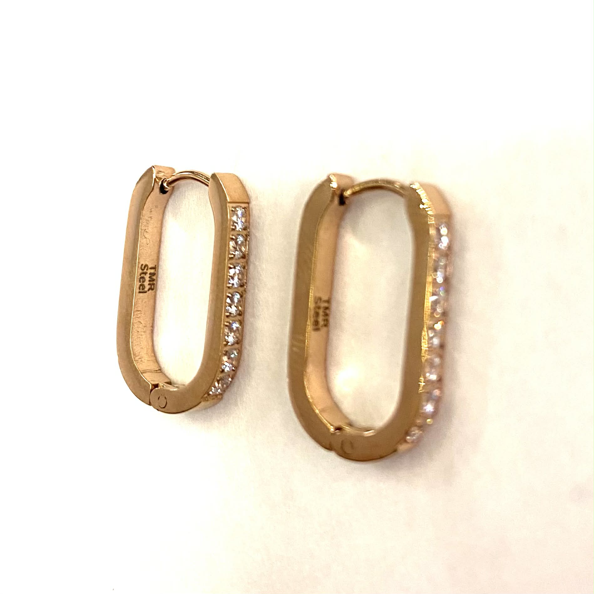 Anneau oval incrusté moyen - 3 variantes - Rouge Inox