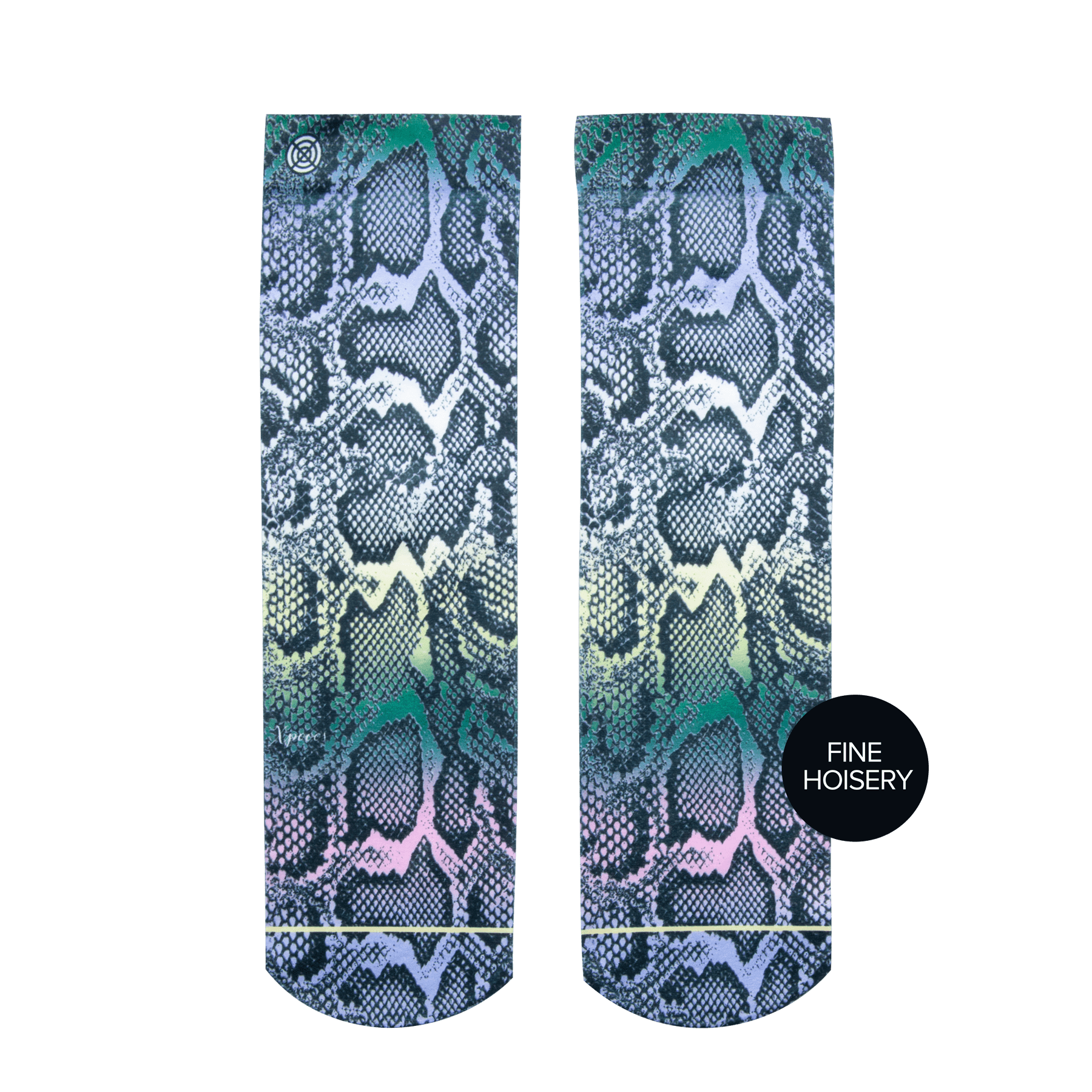 Take a walk on the wild side avec cette impression serpent raffinée. Les couleurs néon vintage pimentent les choses, votre sens du style fera le reste. Portez-les dans vos grosses chaussures ou vos dad sneakers et portez-les bien hautes.