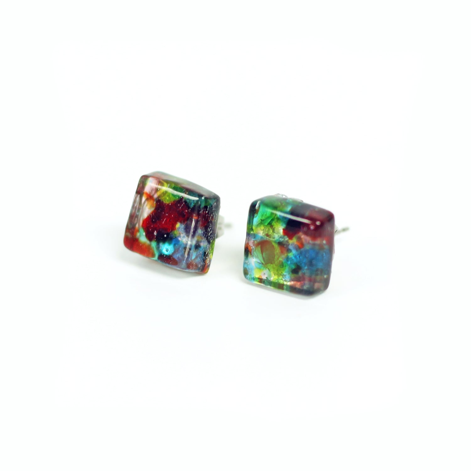 Boucle d’oreille en verre, tige et papillon en acier inoxydable (hypoallergénique).