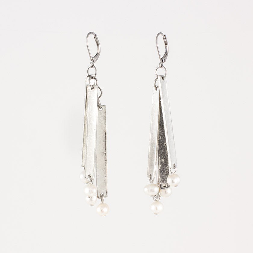 Telles des étoiles filantes, des perles d’eau douce jaillissent du bout des éclats d’étain de Shania. Cet ensemble éblouissement valsera au rythme de vos pas.