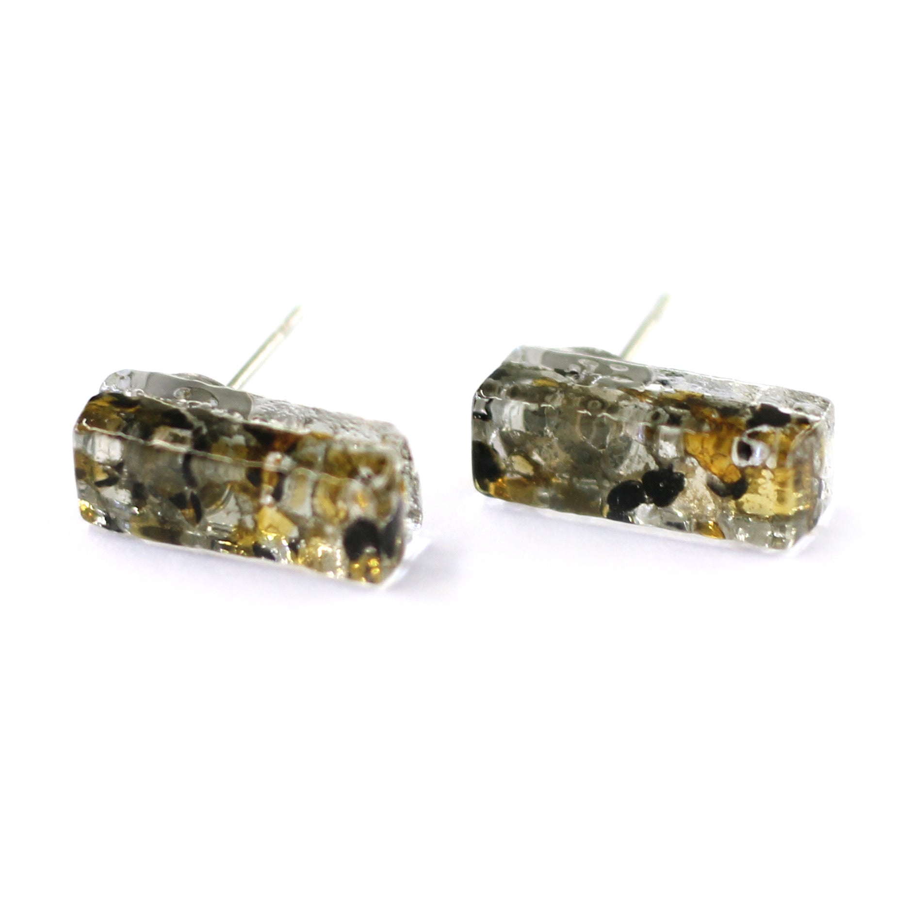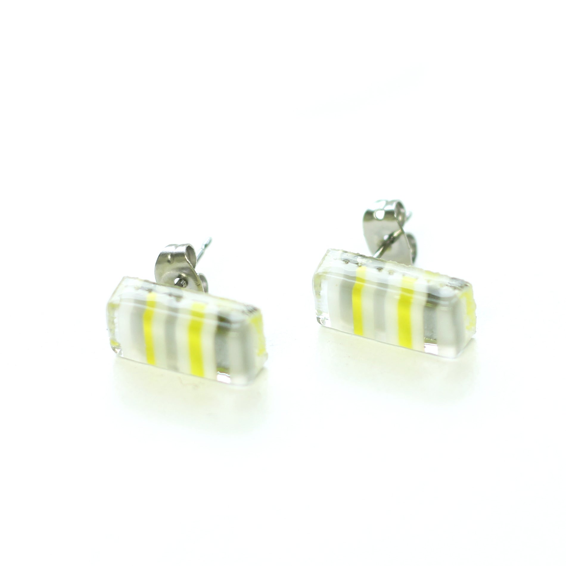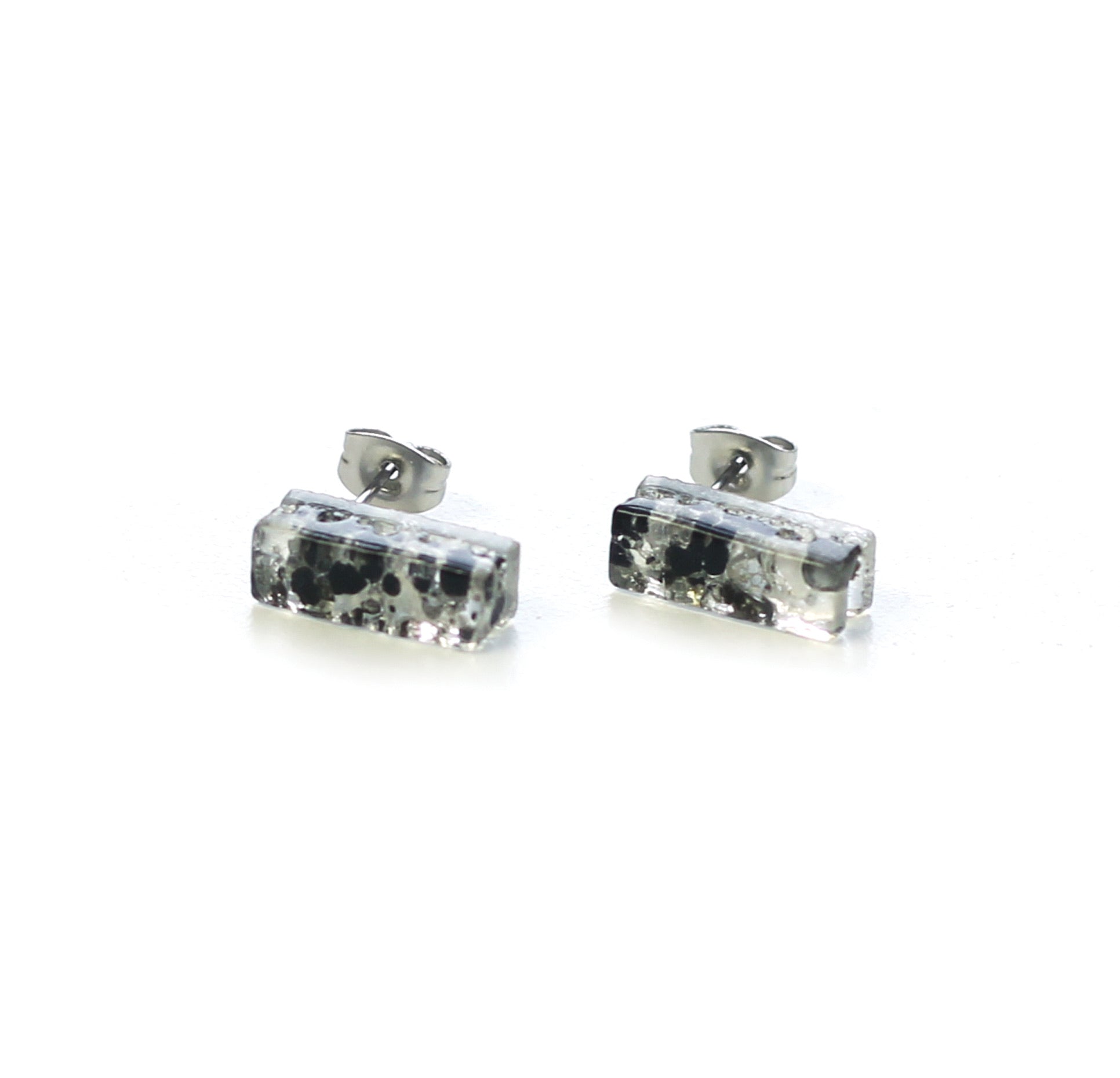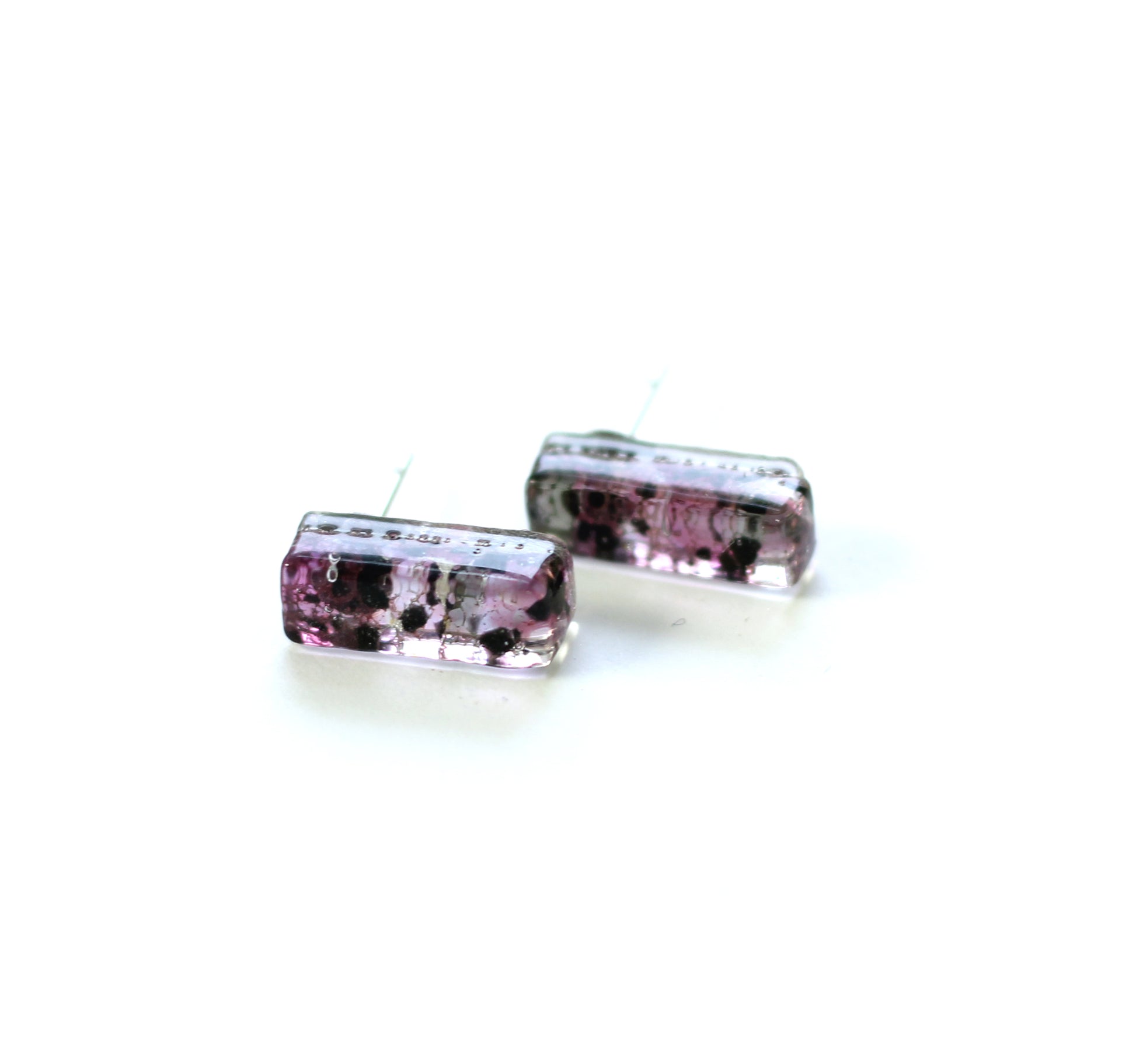 Boucles d’oreilles en verre soufflé sur tiges en acier inoxydable (matières hypoallergéniques). Entièrement dessinées, conçues et fabriquées au Québec.