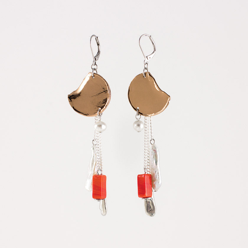 Matière : étain, verre, perle plaqué bronze et attache d'acier inoxydable