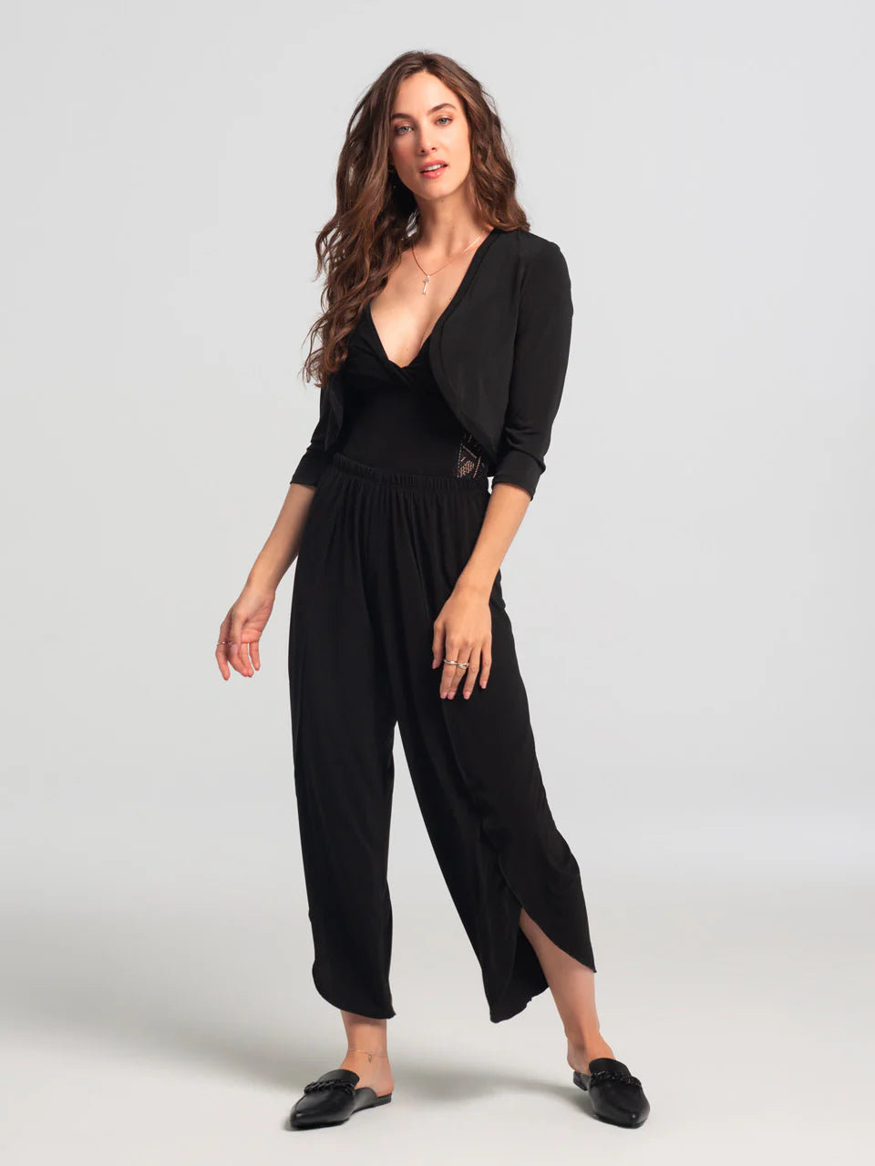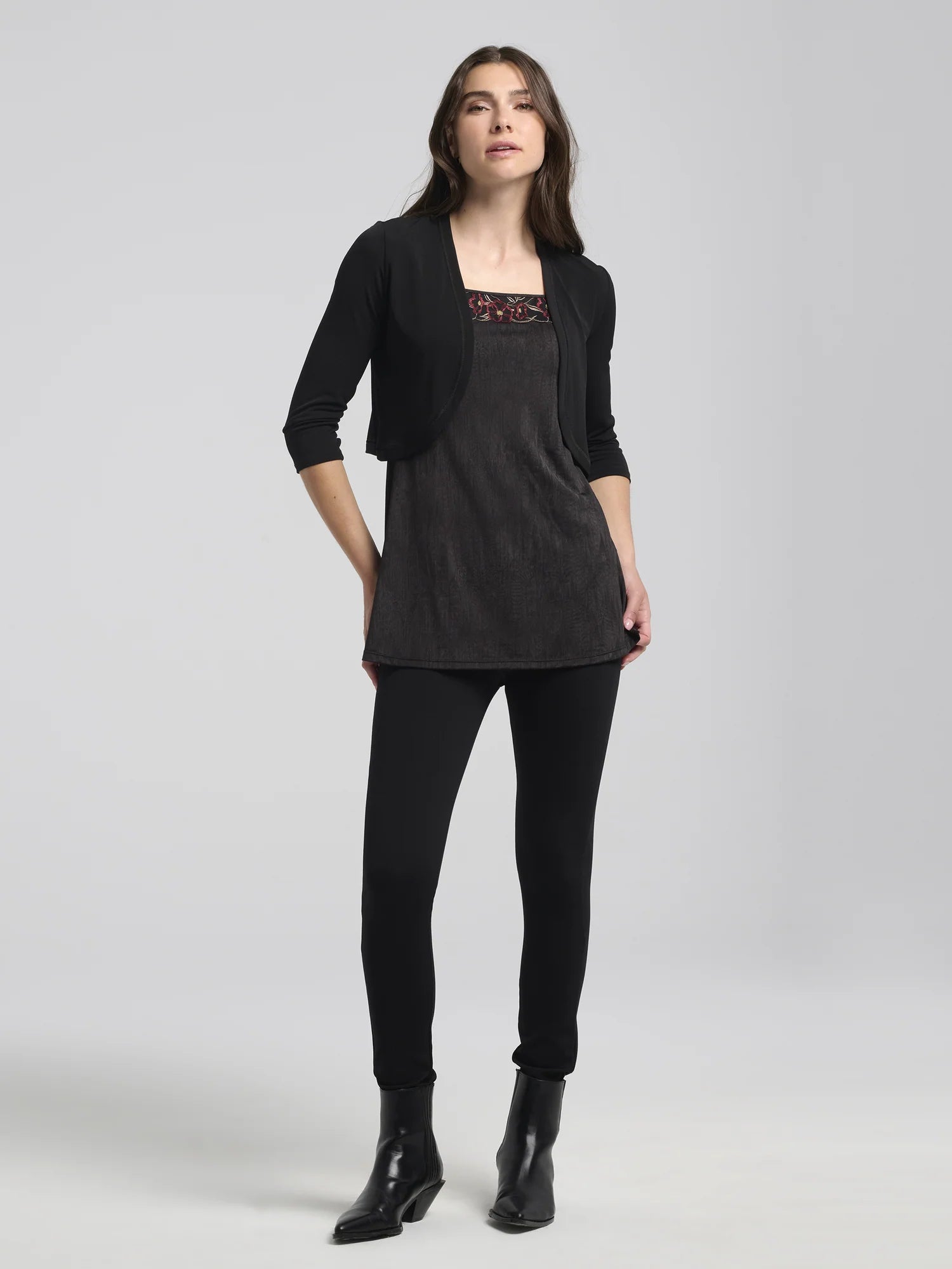 Lorsque nous développons des vêtements, il est toujours primordial pour nous de développer des pièces classiques qui complètent votre garde-robe et qui vous permettent de profiter pleinement de celle-ci, tout au long de l’année. Melika est un de ces vêtements de toutes les occasions qui vous permet de transformer vos hauts et robes. Offerte dans une coupe classique et un tissu extensible, il s’agit d’un incontournable pour tous les évènements. Ce boléro se transporte aussi facilement dans un sac pour les soirées fraîches. Il s’agit simplement d’un de ces morceaux si pratiques qu’une fois que nous l’avons sous la main, on ne sait plus comment on s’en passait auparavant.