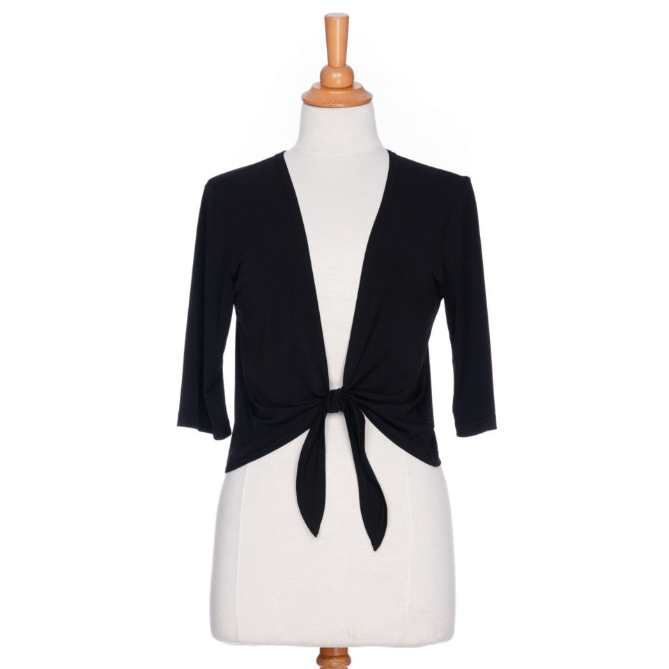 Le boléro pétillant est une pièce mode unique en son genre! En nouant son nœud à l’avant, on obtient un joli effet de bas arrondi qui donne à ce par-dessus une coupe féminine et romantique. Ses manches 3/4, dévoilant délicatement vos poignets, vous plairont lors des beaux jours où vous souhaitez vous couvrir juste un peu, mais pas trop.