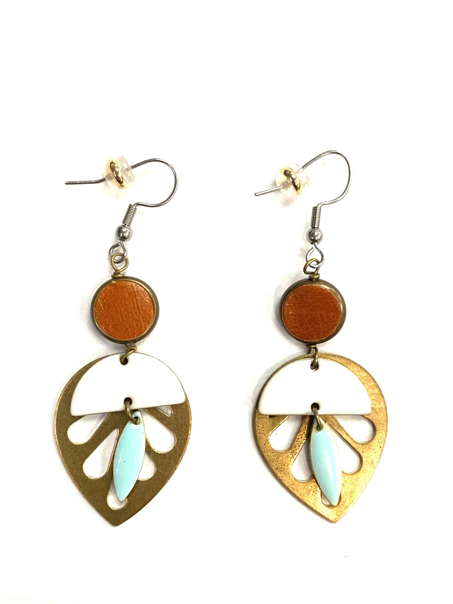 Boucle d'oreille - du Nord - Feuille - Orange - Bleu - Création Fish