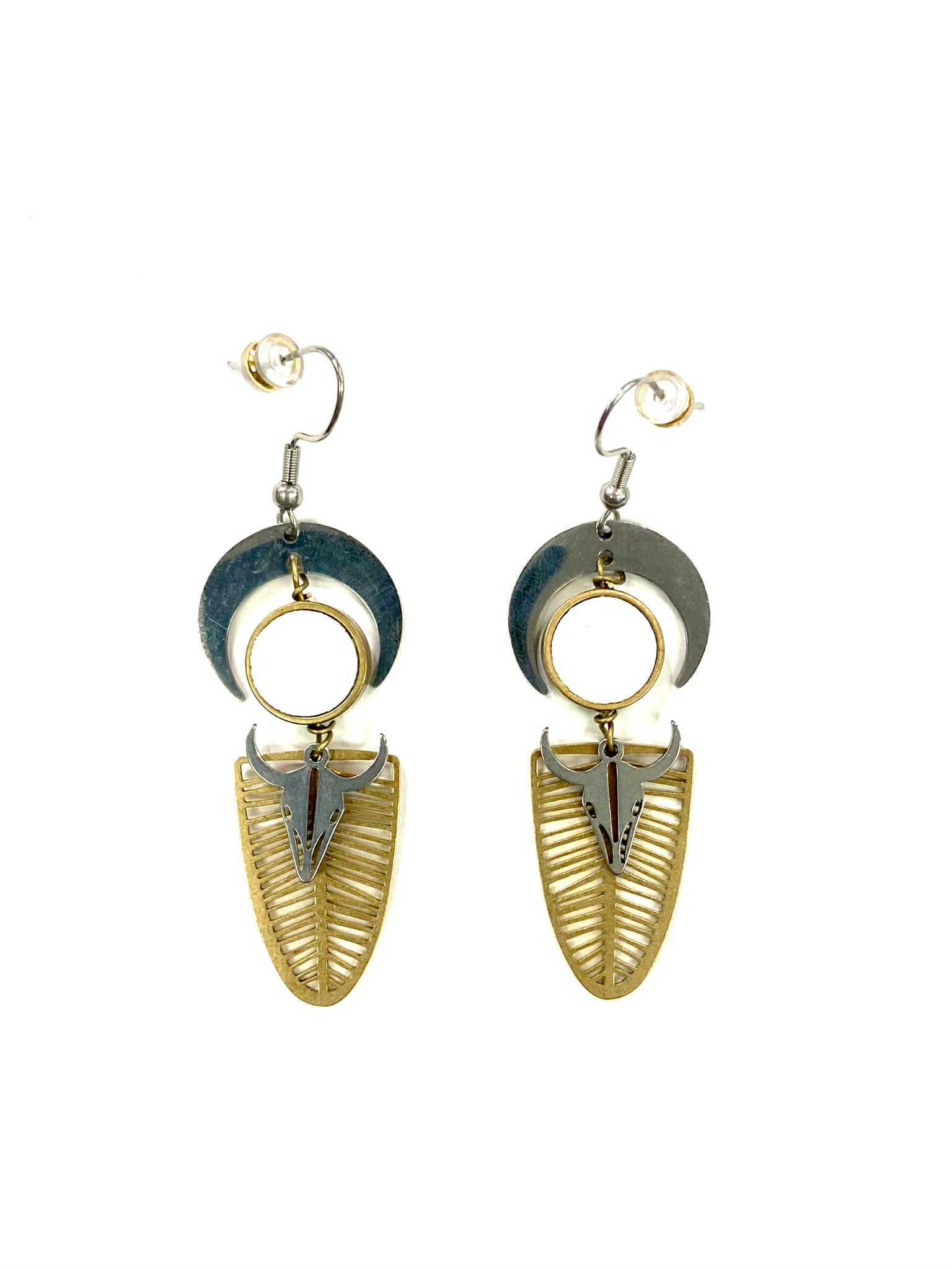 Matériaux : crochet hypoallergénique en acier inoxydable, breloque en laiton et alliage de zinc recouvert. Anneau laiton, intérieur en cuir.