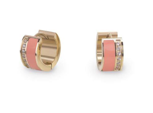 Boucle d'oreilles acier inox or, zircons et résine rose