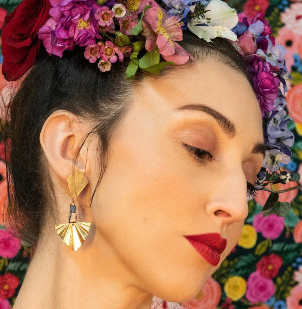 Boucles d'oreilles en laiton et pièces de céramique faites main en Afrique.