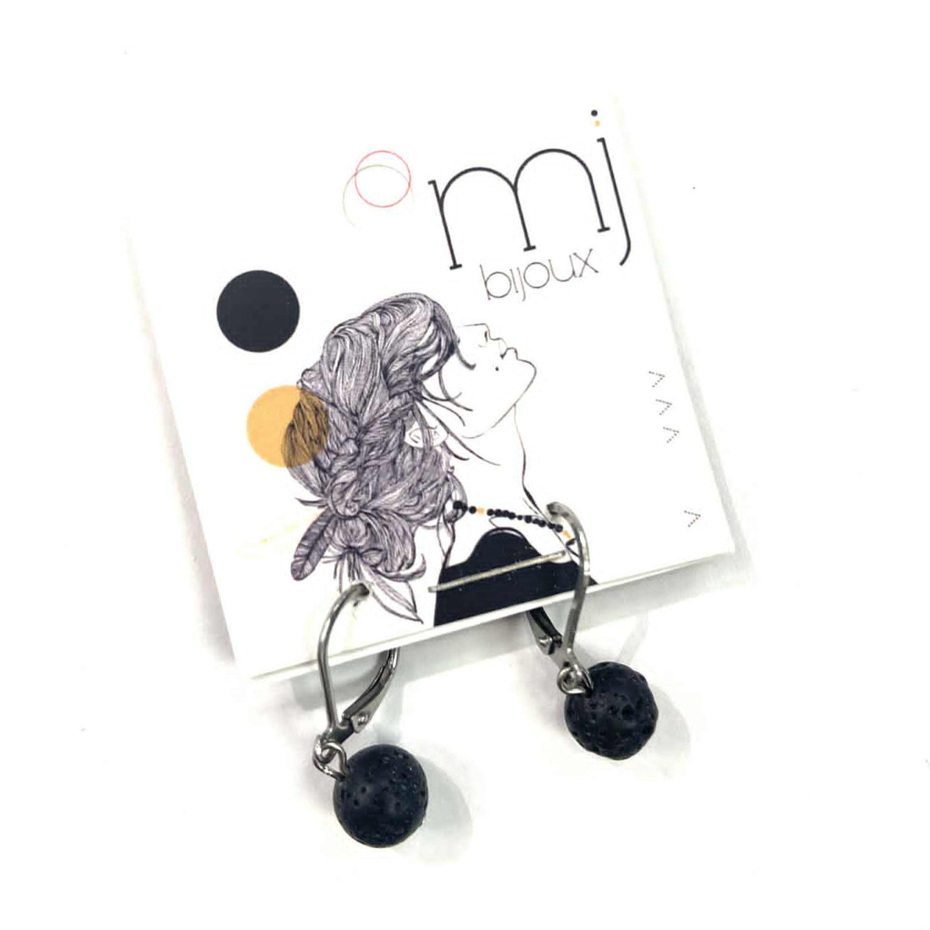 Boucles d'oreilles - Bille en pierre - Noire brute - MJ Bijoux