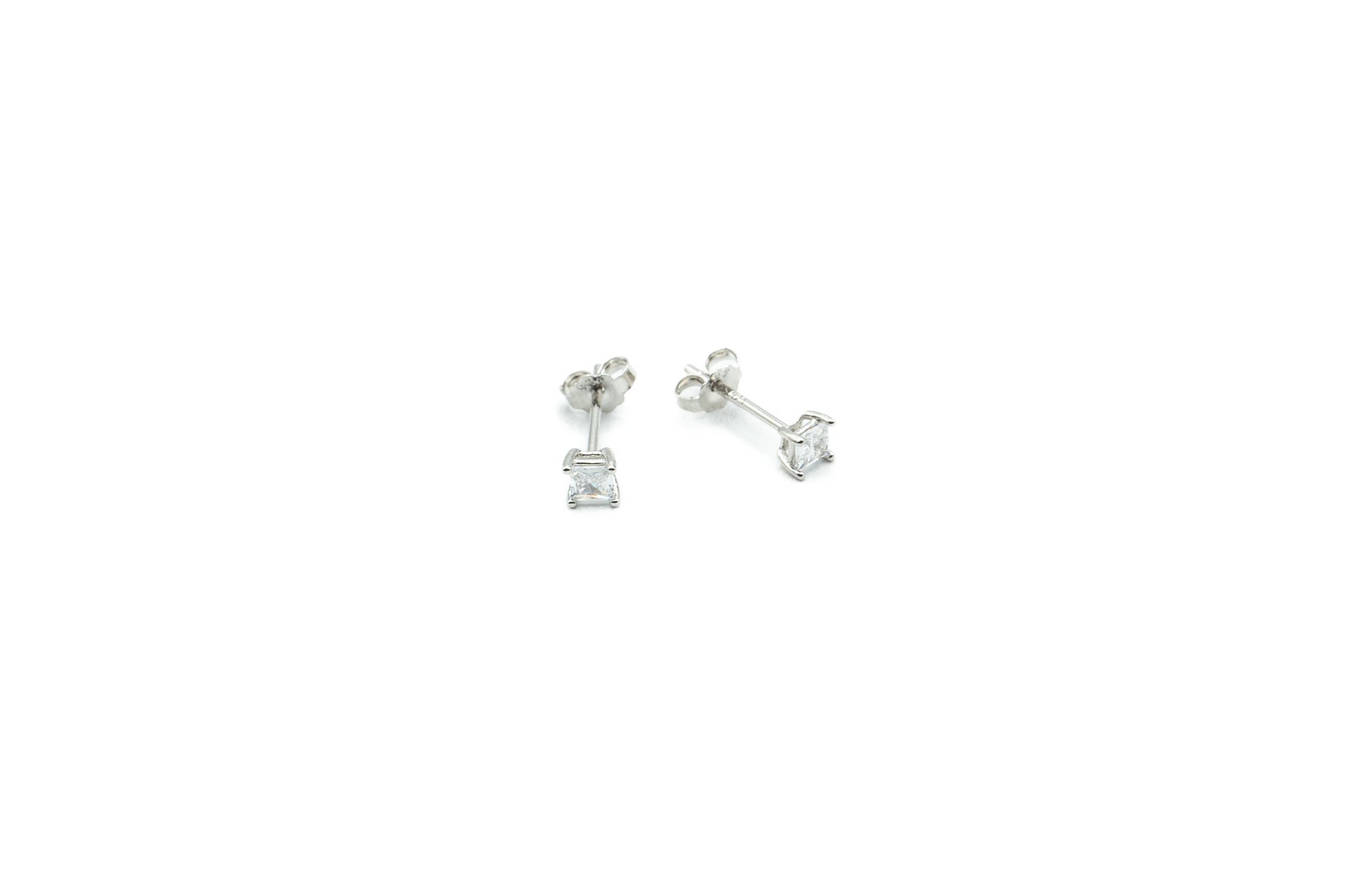 Boucles d'oreilles - Carré 3.5mm - Avril (Diamant) - Rouge Argent 9.25