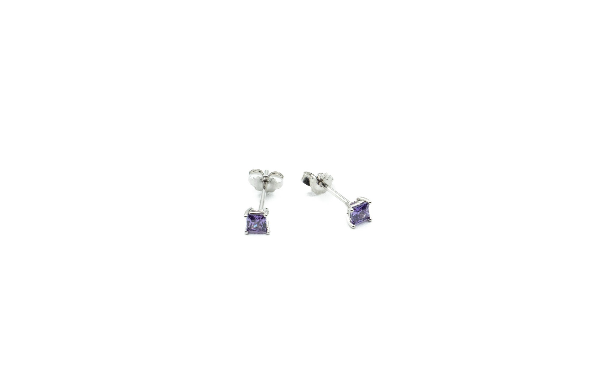 Boucles d'oreilles - Carré 3.5mm - Mauve - Rouge Argent 9.25