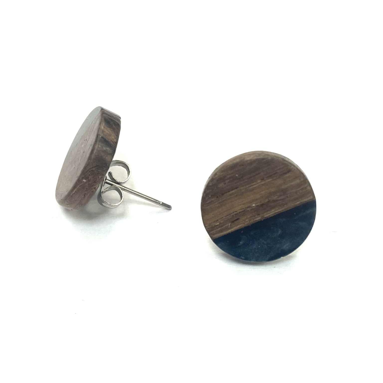 Boucles d'oreilles - Cercle de bois demi-noir - Rouge Inox