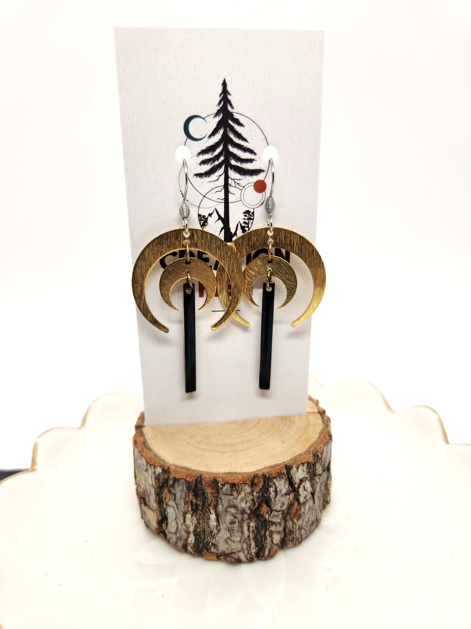 Boucles d'oreilles - Double Lune - Noire - Création Fish