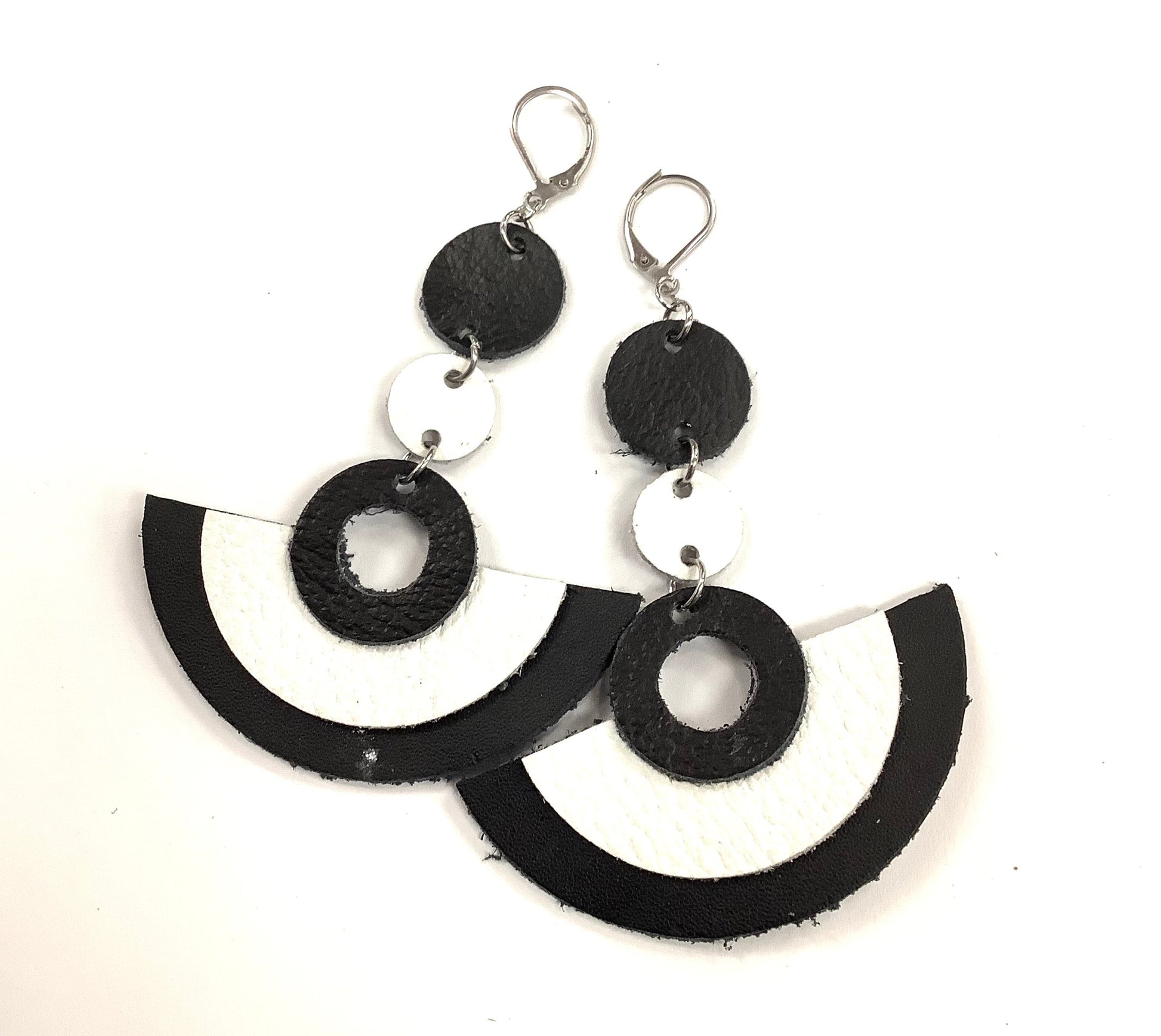 Boucles d'oreilles en cuir avec attaches en crochet d'acier inoxydable.