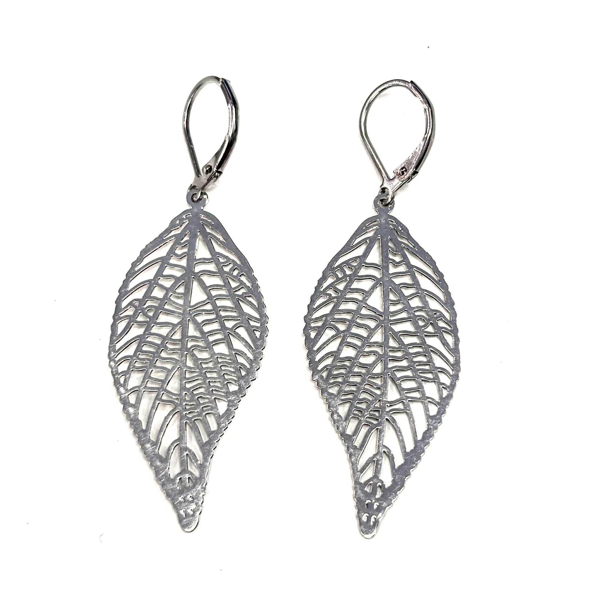 Boucles d'oreilles - Feuille allongée argent- Rouge Inox