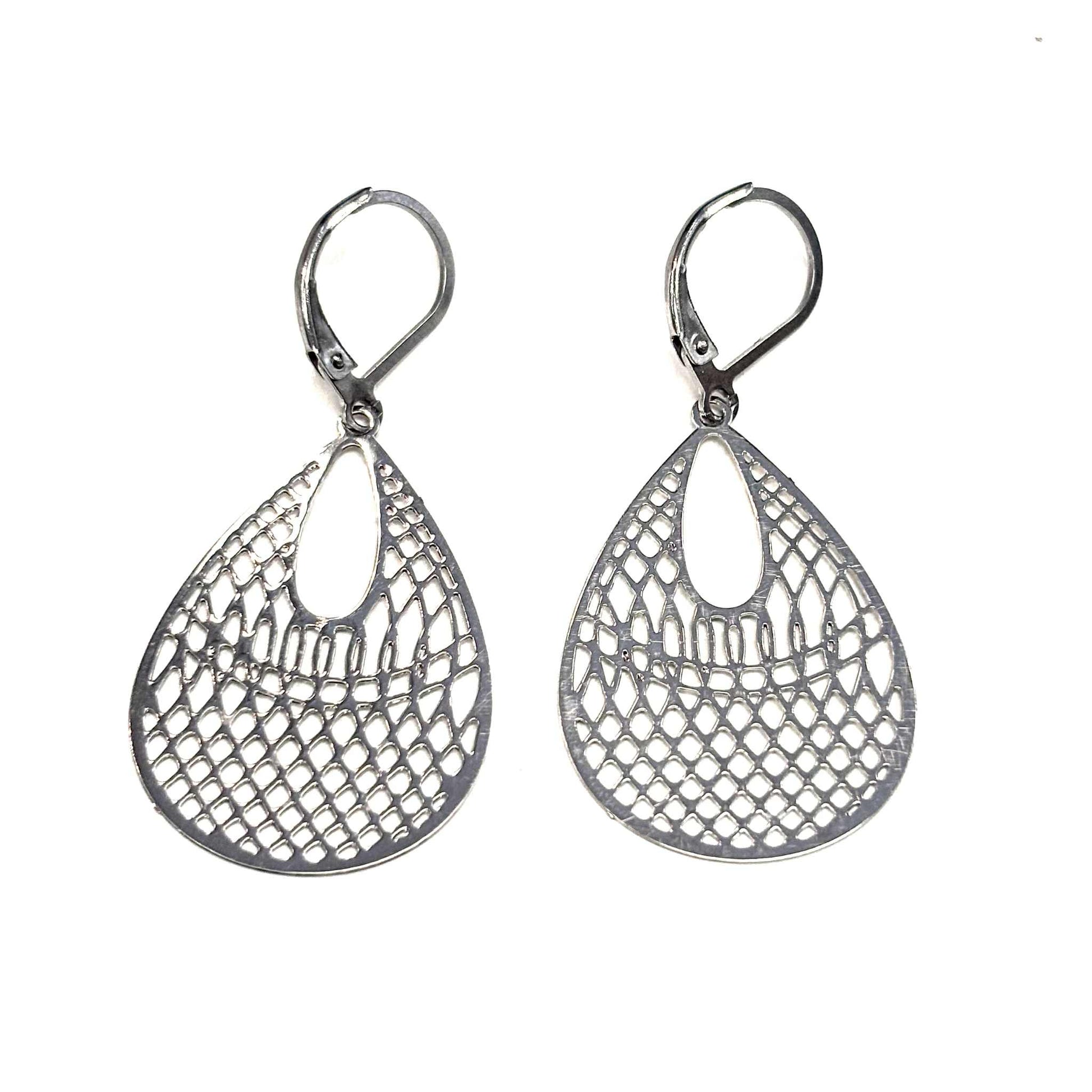 Boucles d'oreilles - Goutte tissage - Rouge Inox - Argent et or rose