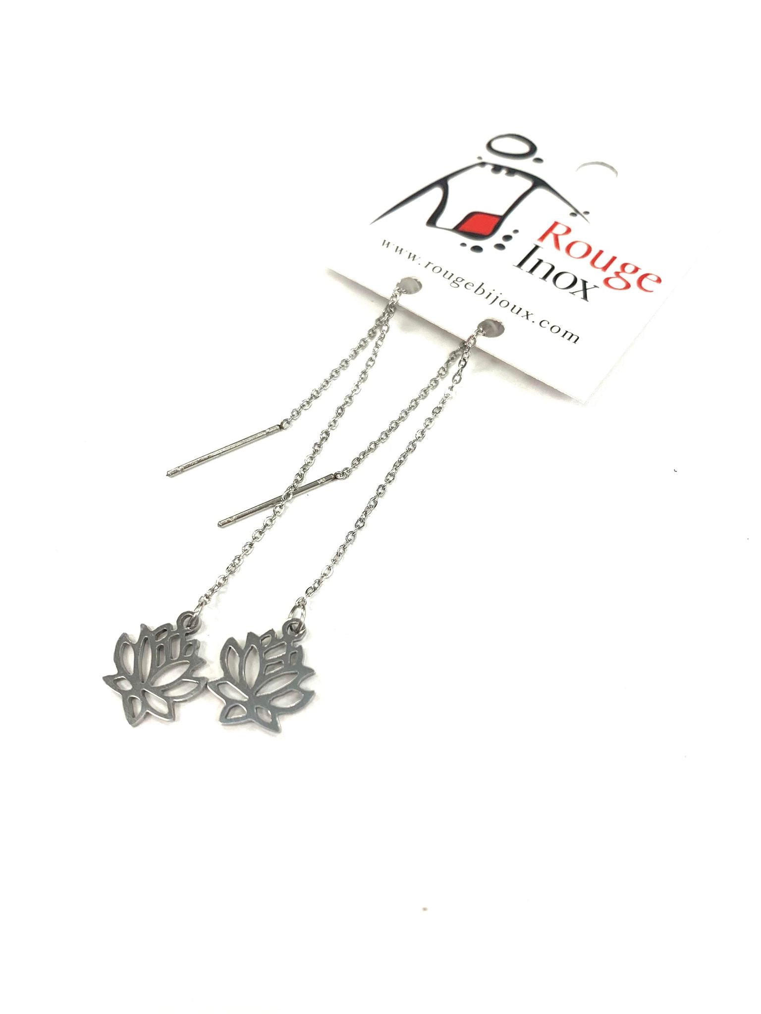 Boucles d'oreilles longues Lotus - Argent - Rouge Inox
