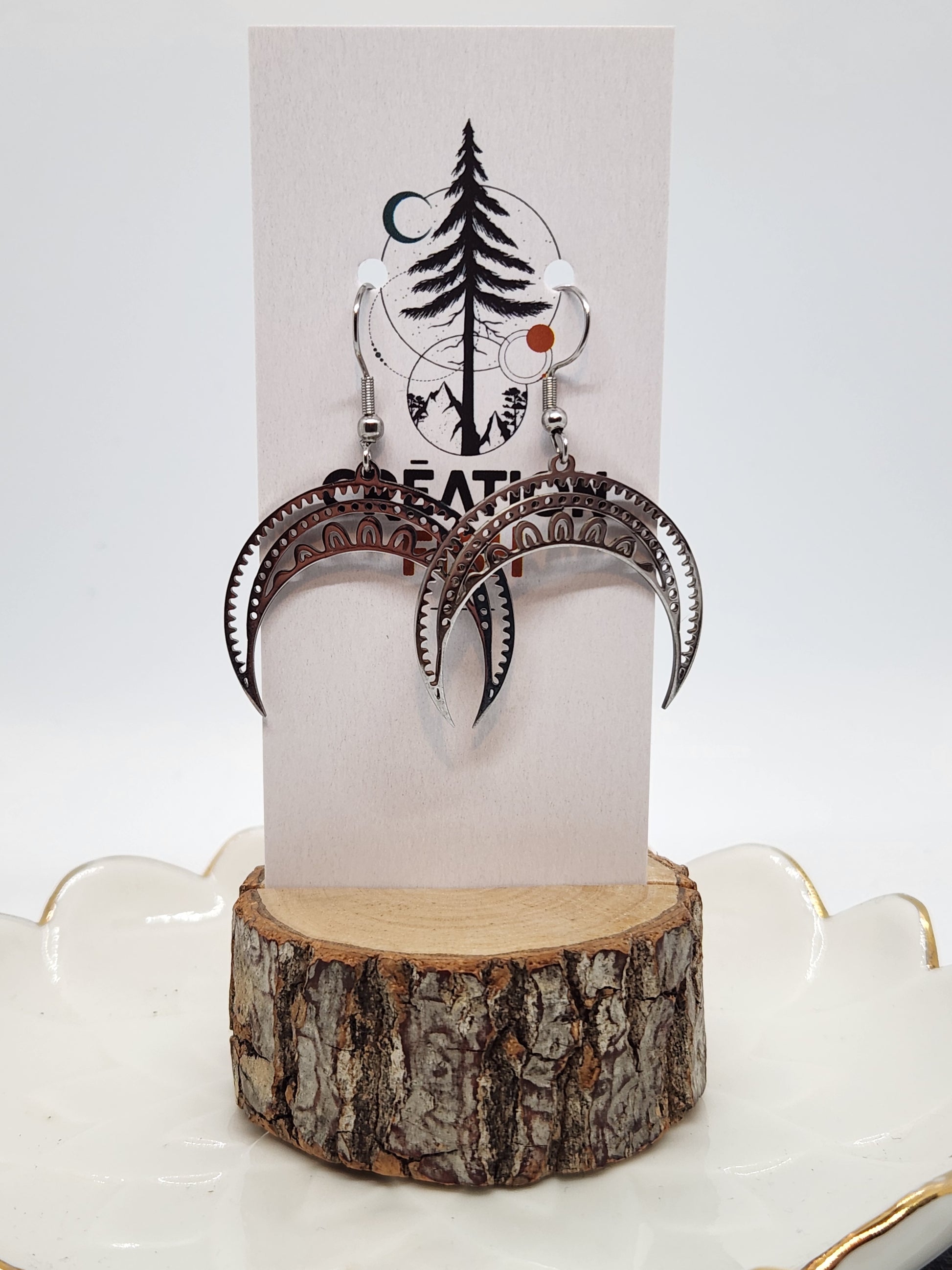 Boucles d'oreilles - Lune Mandala- inox - Création Fish