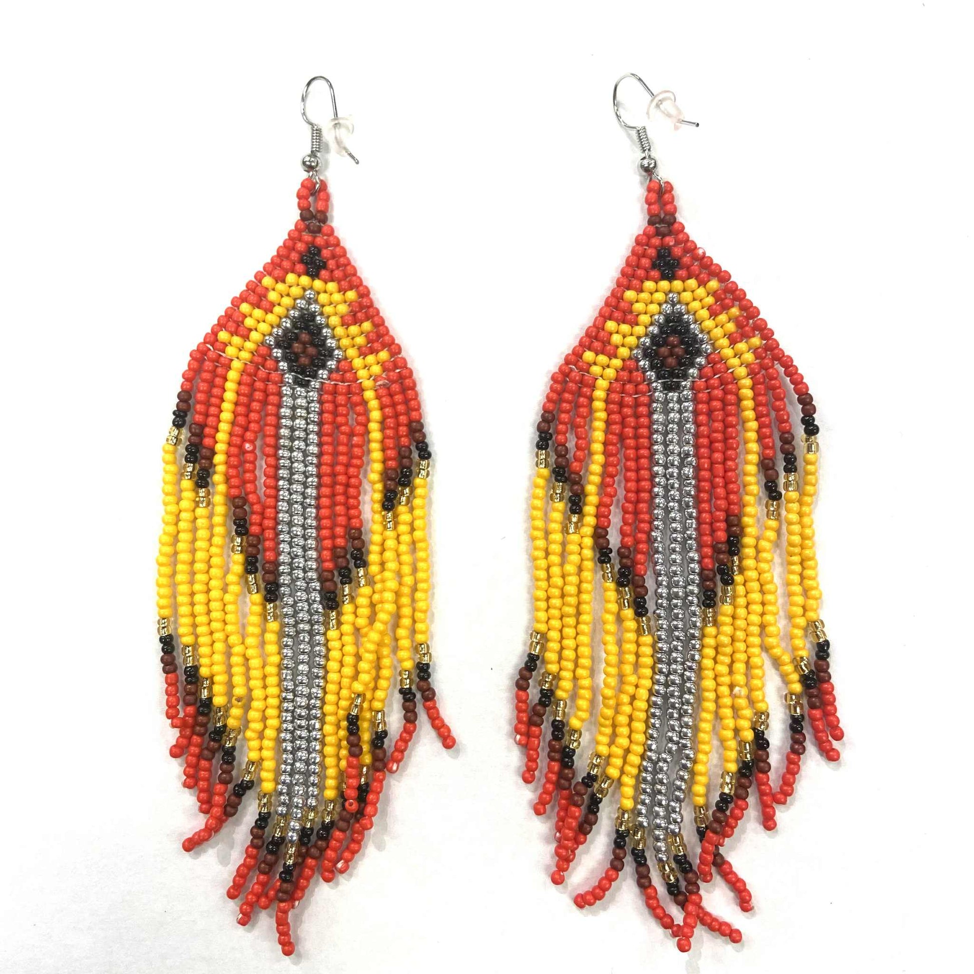 Boucles d'oreilles - Perlage - Feu ardent - Rouge Inox