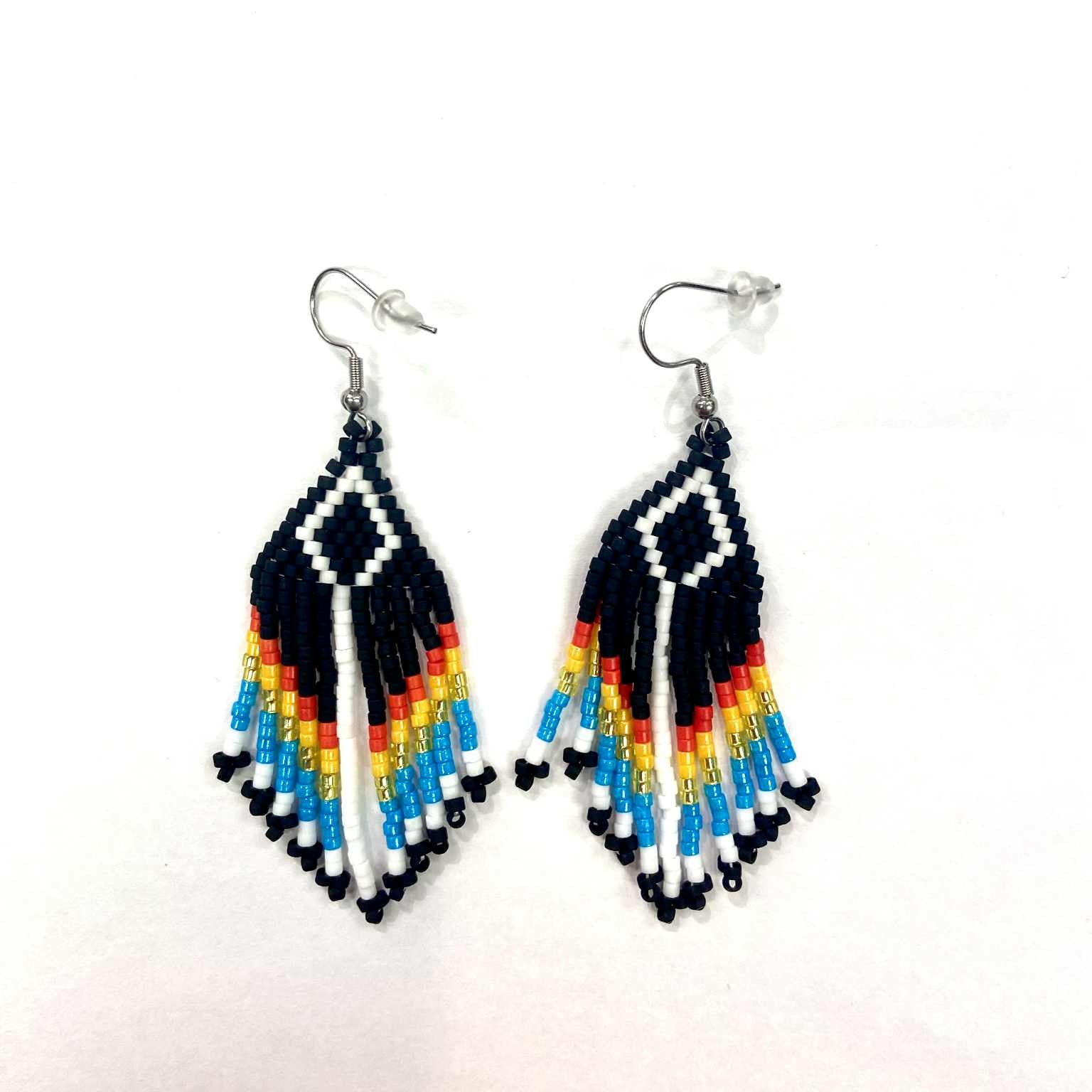 Boucles d'oreilles - Perlage - Noir losange - Rouge Inox