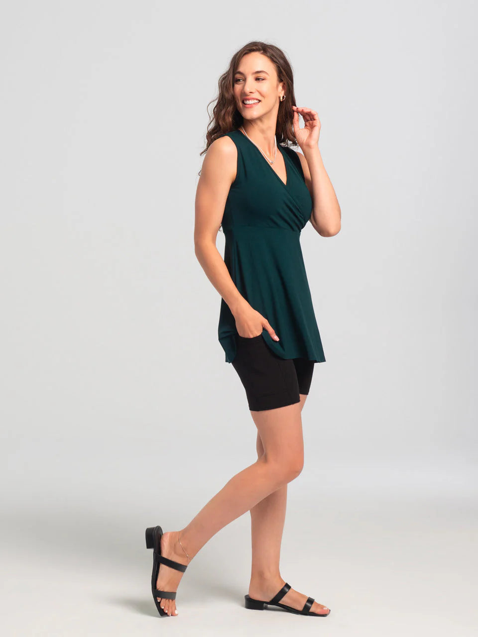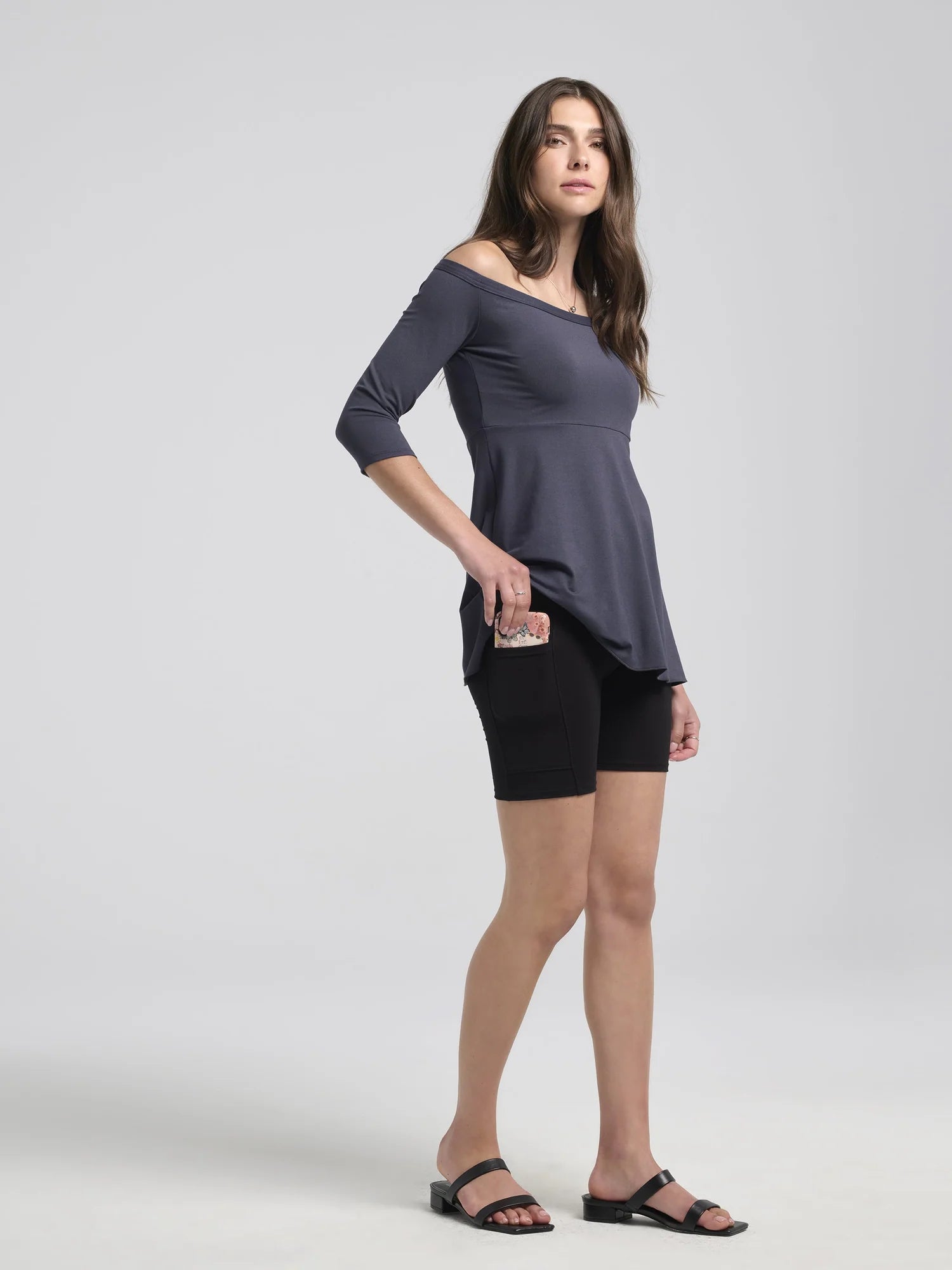 Il n’y a possiblement rien de pire que de profiter d’un beau moment d’été pour le voir gâché dû au frottement de nos cuisses et l’irritation qui s’ensuit. Ne sacrifiez plus votre confort et votre envie de porter une robe. Notre nouveau short Gwen a été créé pour être porté en tout confort sous les robes et jupes, en laissant peu de marques de couture. La bande élastique est faite pour être mince, la rendant invisible sous un autre tissu, tout en gardant votre confort en tête ainsi que le besoin que la bande de taille demeure bien en place. Fait d’un tricot de viscose léger, il est confortable, sans être trop chaud au cours de la journée. Portez le avec vos robes favorites pour le plaisir de ne pas vous en faire au moindre coup de vent ou pour épargner vos cuisses lors des journées humides. Cette toute nouvelle version vous vient avec une poche intégrée à la cuisse pour s’assurer que vous ayez vos essentiels sous la main en tout temps. Gwen est un outil pratique pour la garde-robe de tous, un must à avoir sous la main en tout temps!