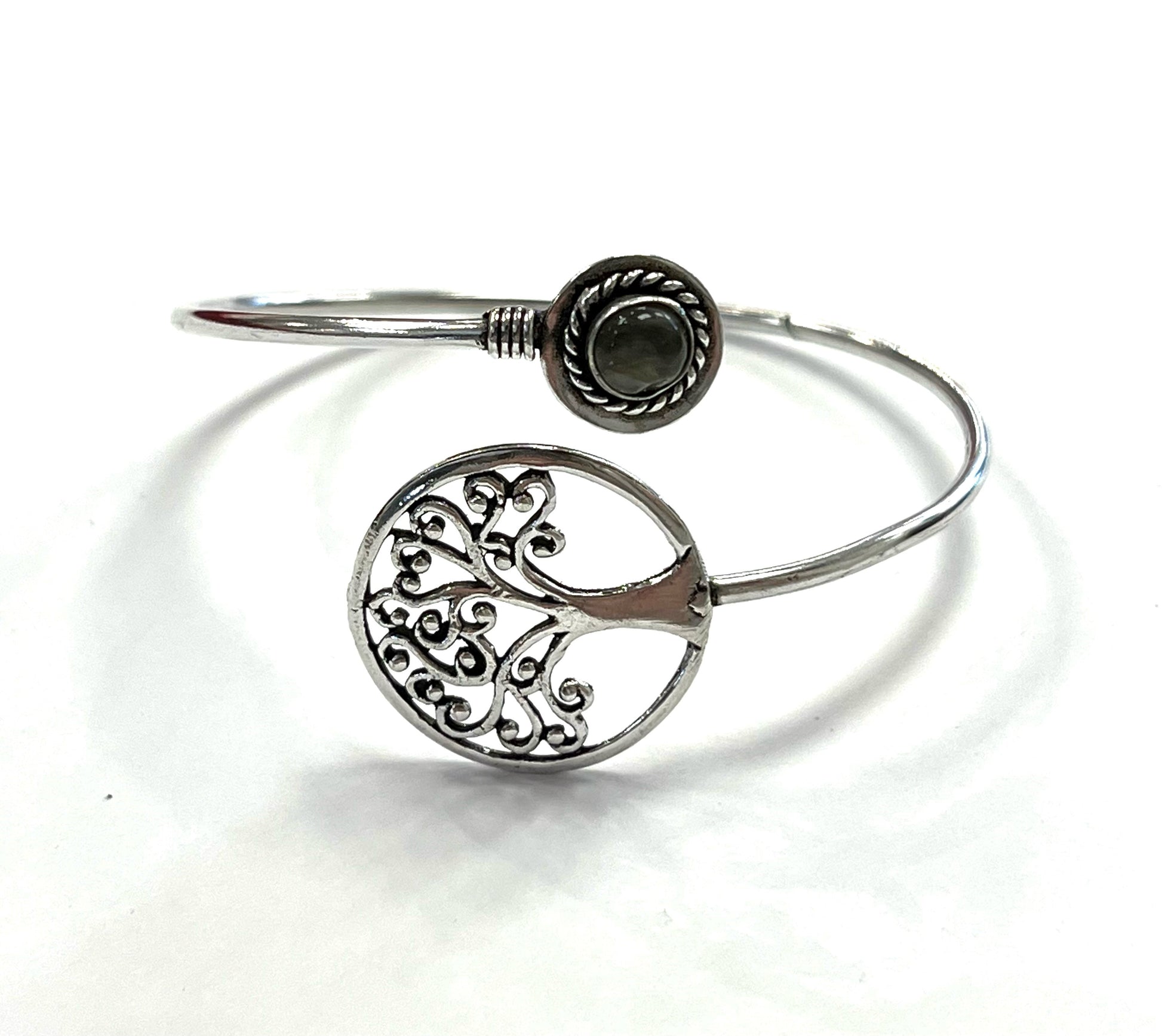 Bracelet de laiton ajustable au poignet agrémenté d'une véritable pierre.