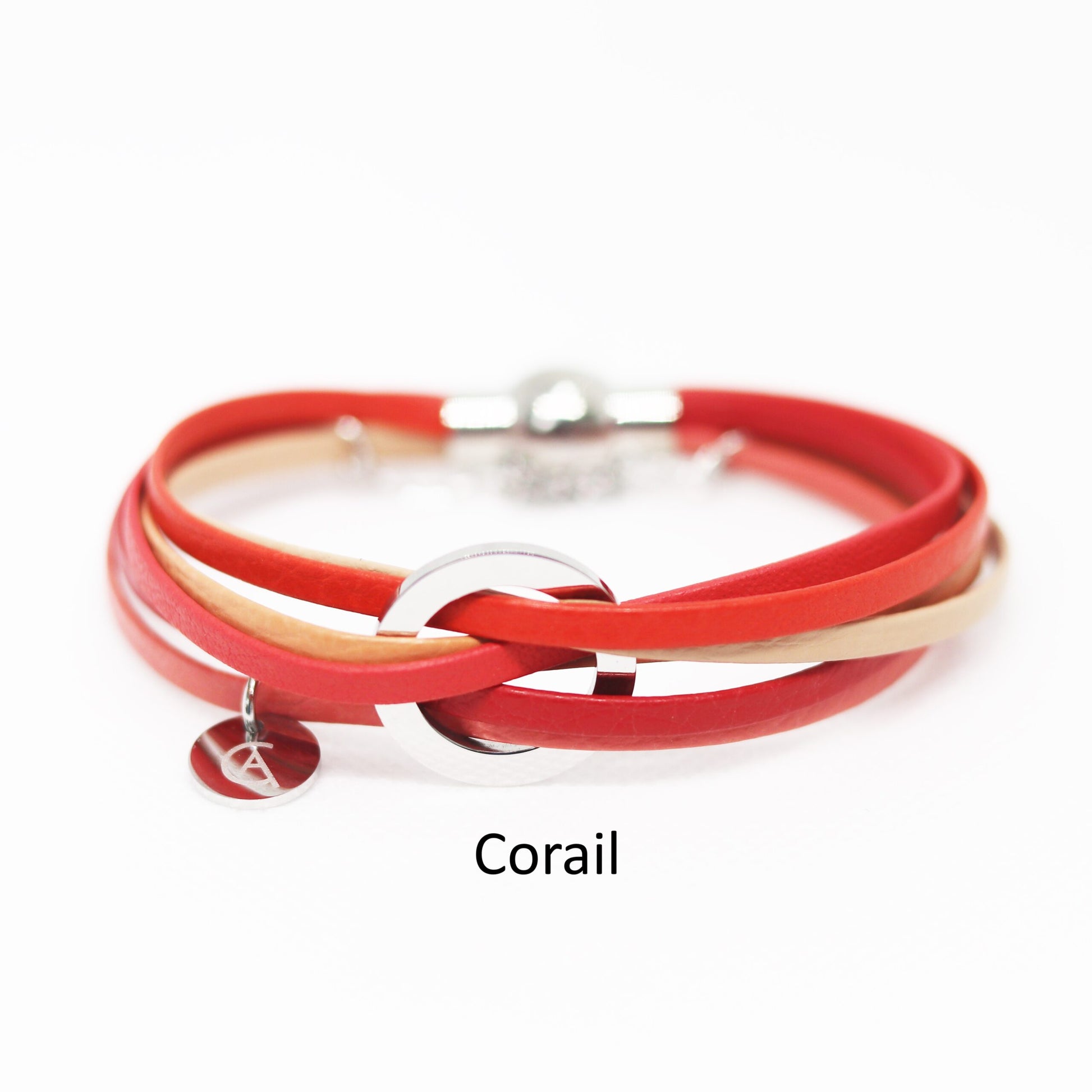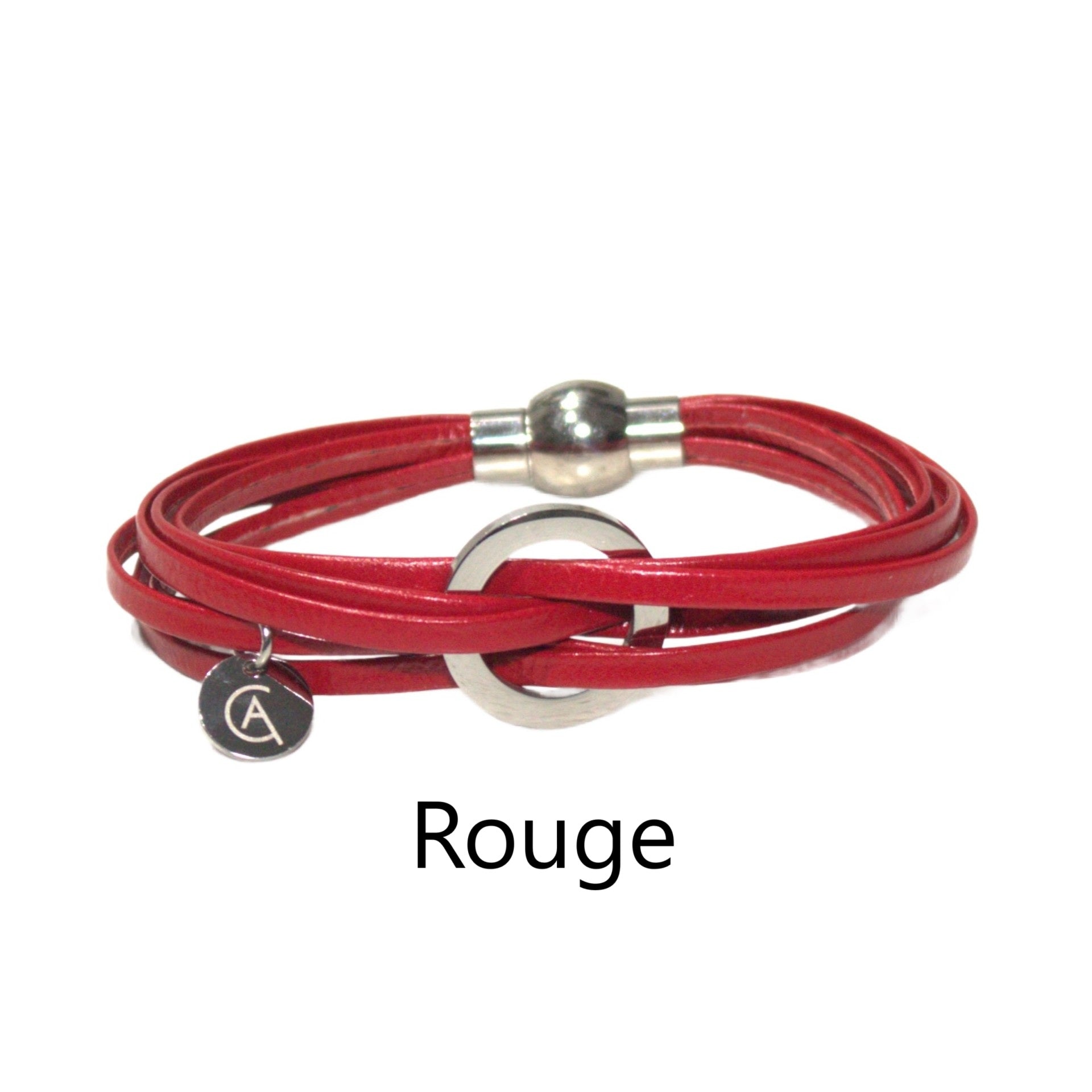 Le bracelet Lara est LE COUP DE COEUR de nos clientes. Il est composé de cuir véritable agrémenté d’un anneau d’acier inoxydable. Le fermoir est également en acier inoxydable et il est aimanté.
