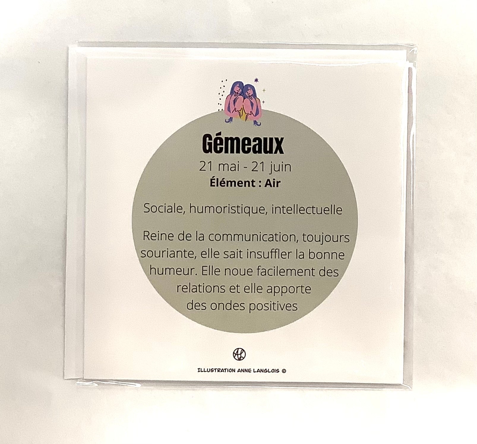 Carte du signe astrologique des Gémeaux : 21 mai – 21 juin.