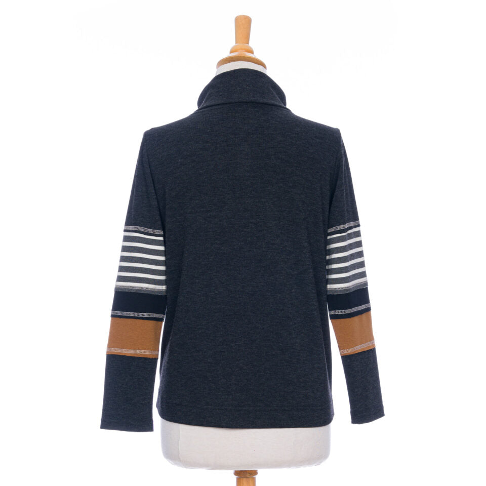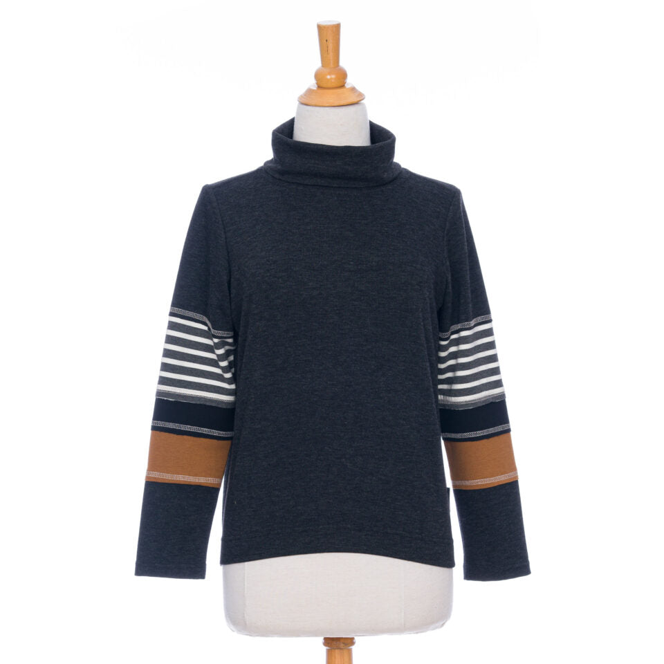 Emmitouflez-vous de douceur avec le chandail chicouté. Taillé dans un tissu des plus doux, ce chandail réconfort est magnifique et original avec son patchwork et ses jeux de coutures sur les manches qui lui donnent toute son authenticité. Son petit col montant est la touche finale pour un morceau des plus cozy.
