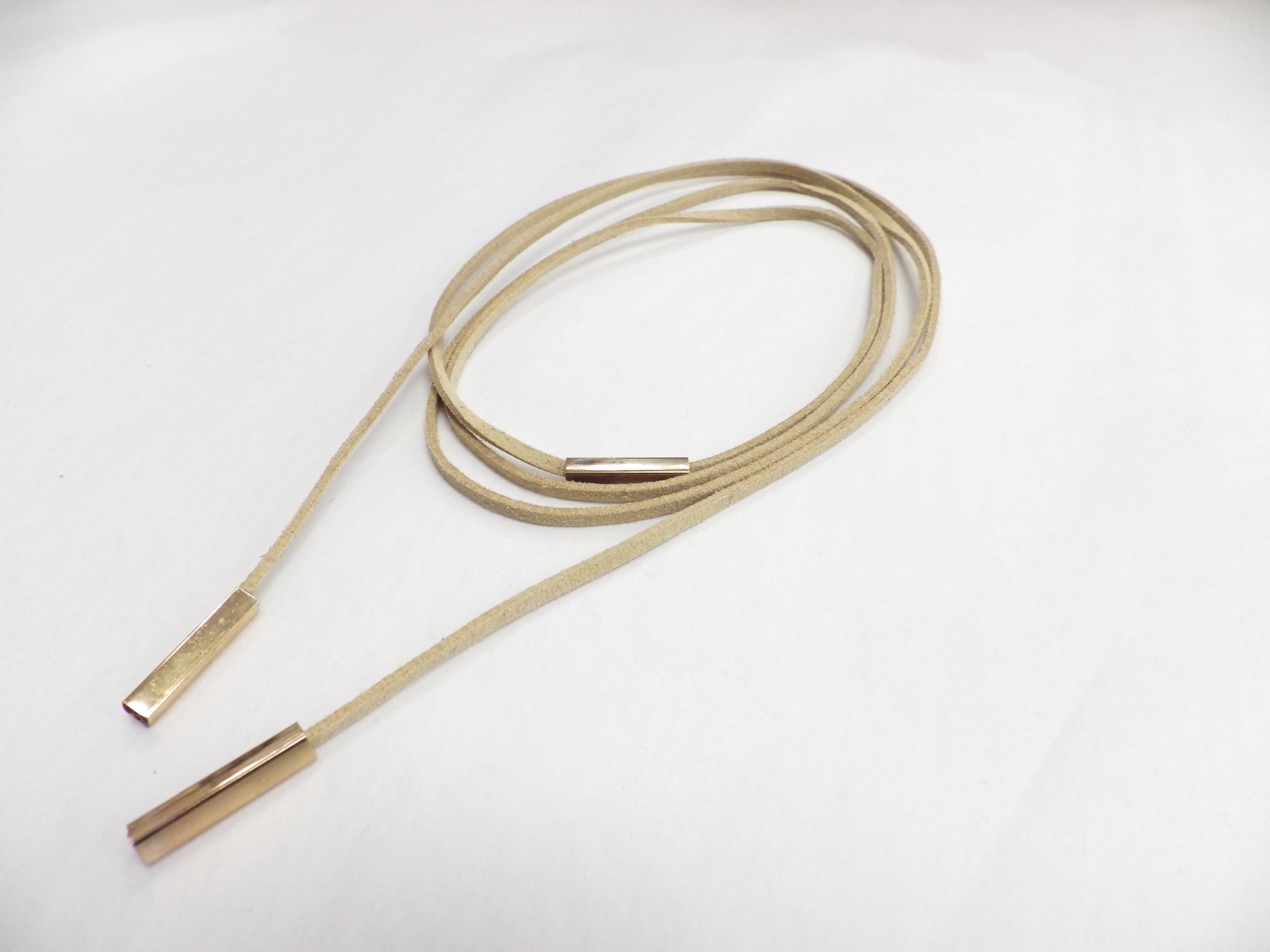 Lacet de cuir avec ornements en forme de prisme cubique doré. Vous pouvez faire le nombre de tour désiré au cou, le porter plus ou moins lousse, ce collier cordon est ajustable selon votre inspiration du moment!
