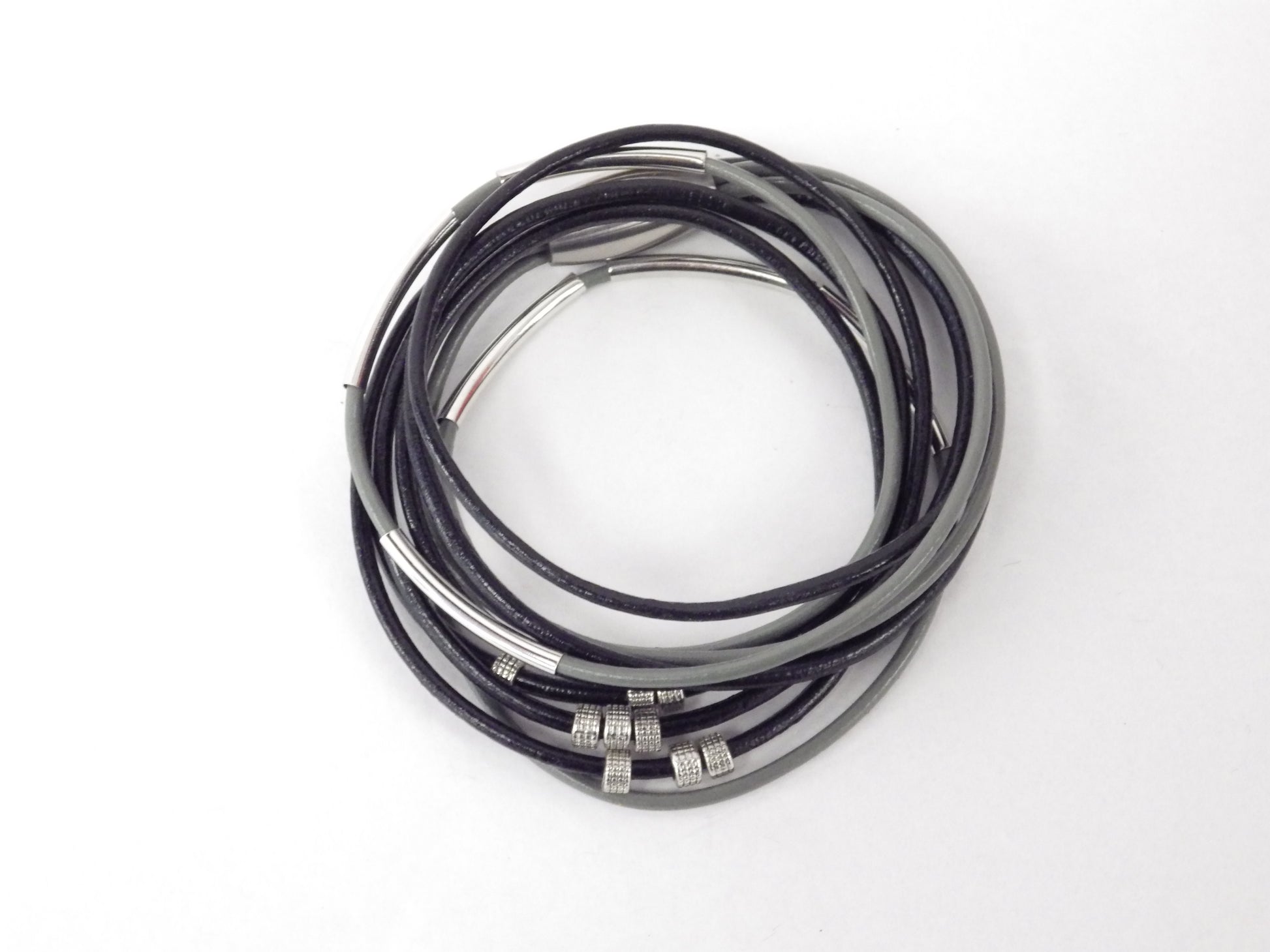 Collier/Bracelet noir et gris, tubes - MJ Bijoux