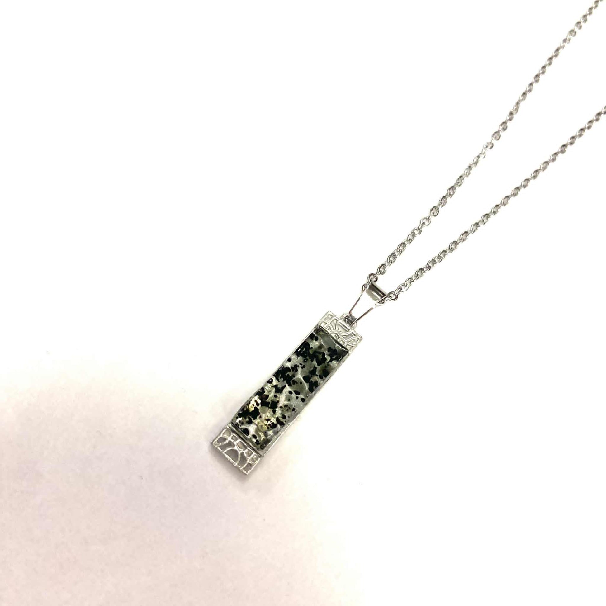Pendentif de verre sur une chaîne en acier inoxydable de 18 pouces incluant une chaînette d’extension de 2 pouces. (Hypoallergénique).