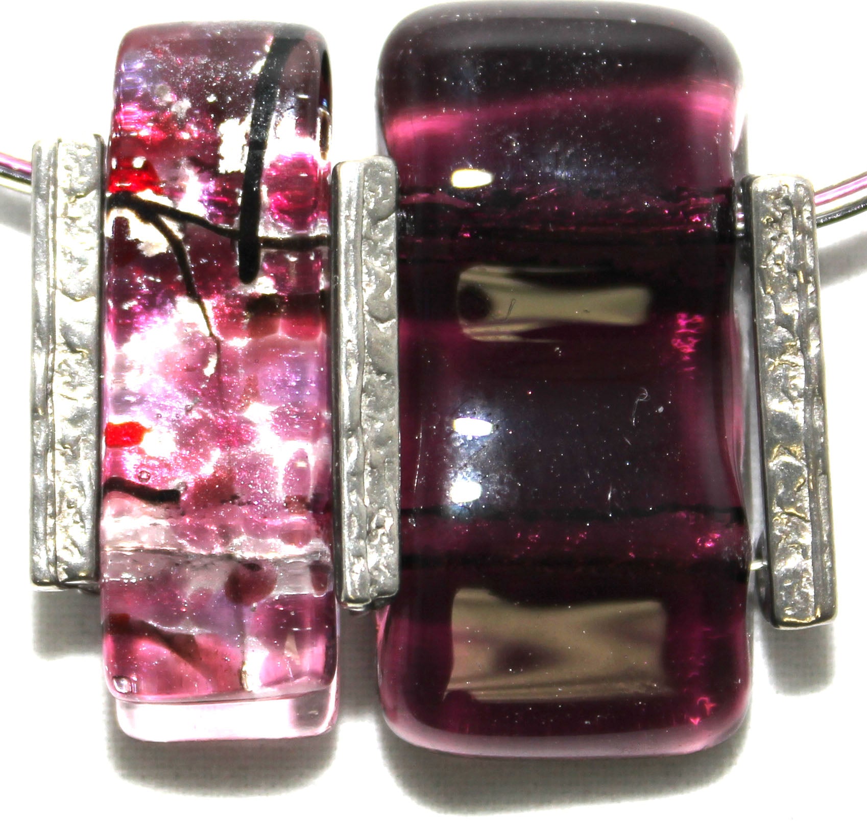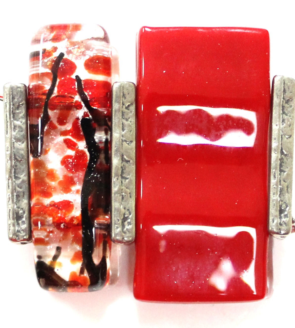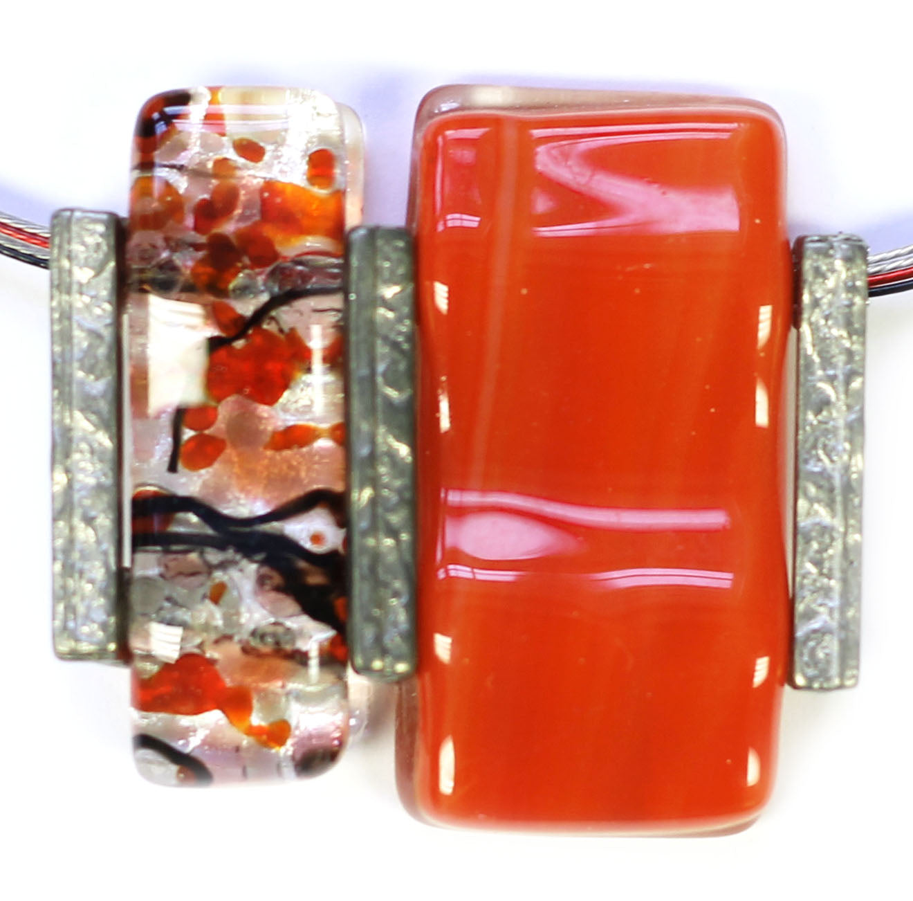 Collier verre et étain sur fils d’acier inoxydable (hypo-allergène) recouvert de nylon de couleurs.