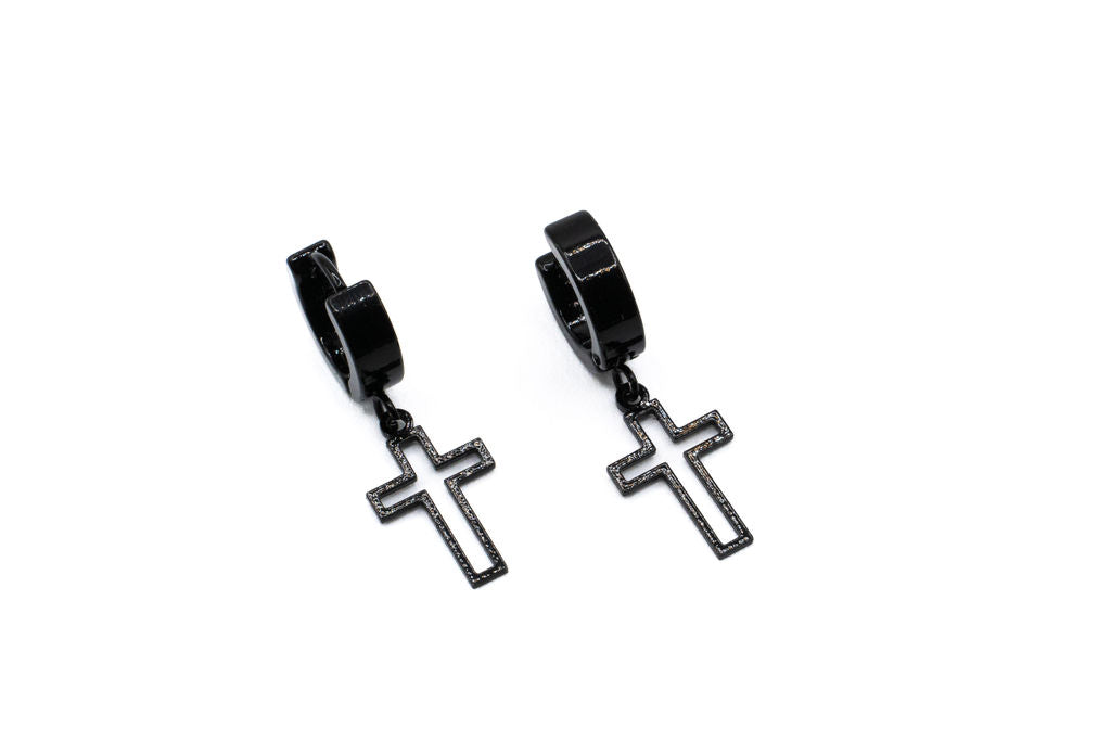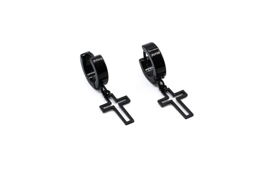Bo Anneau avec Croix Pendante - Noir - Rouge inox