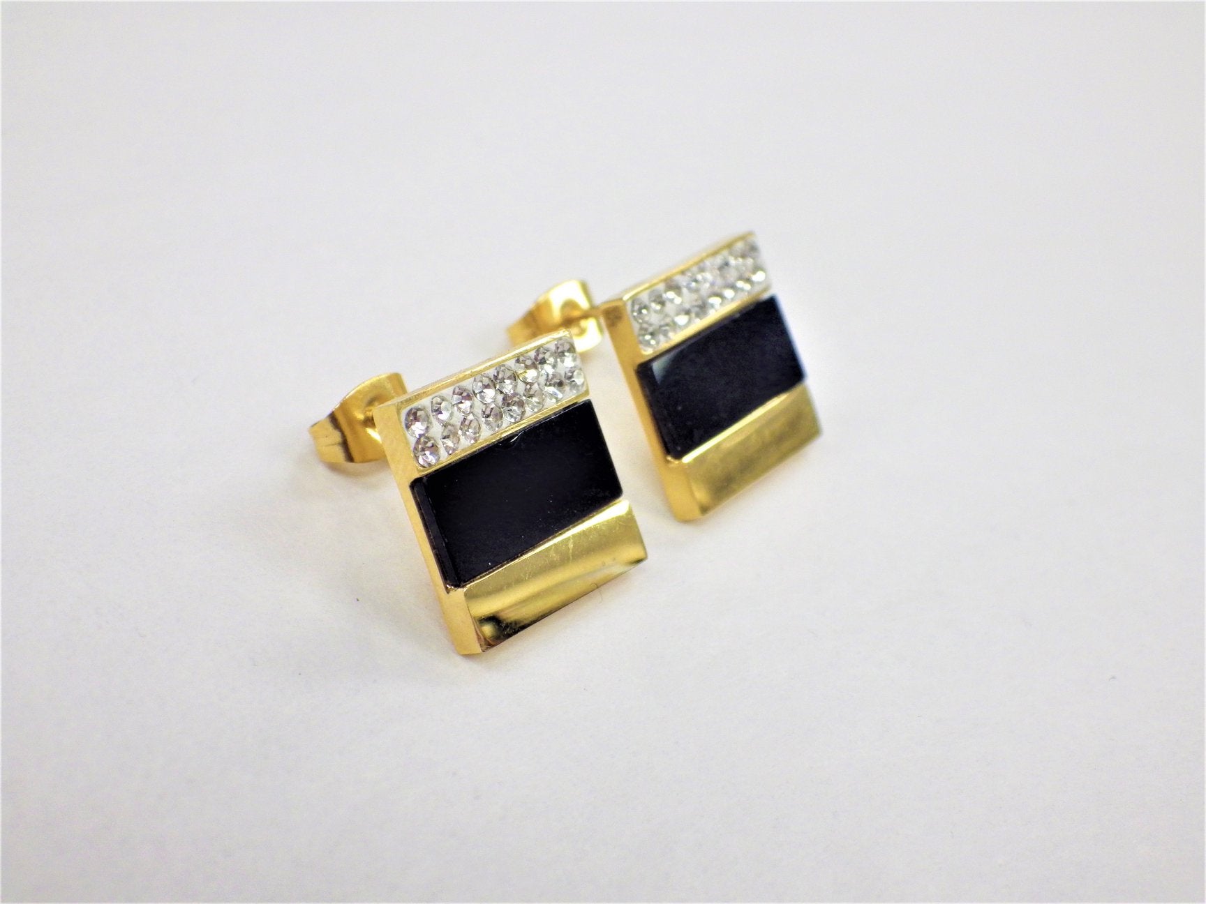 BO carré noir et zircon or- Rouge inox