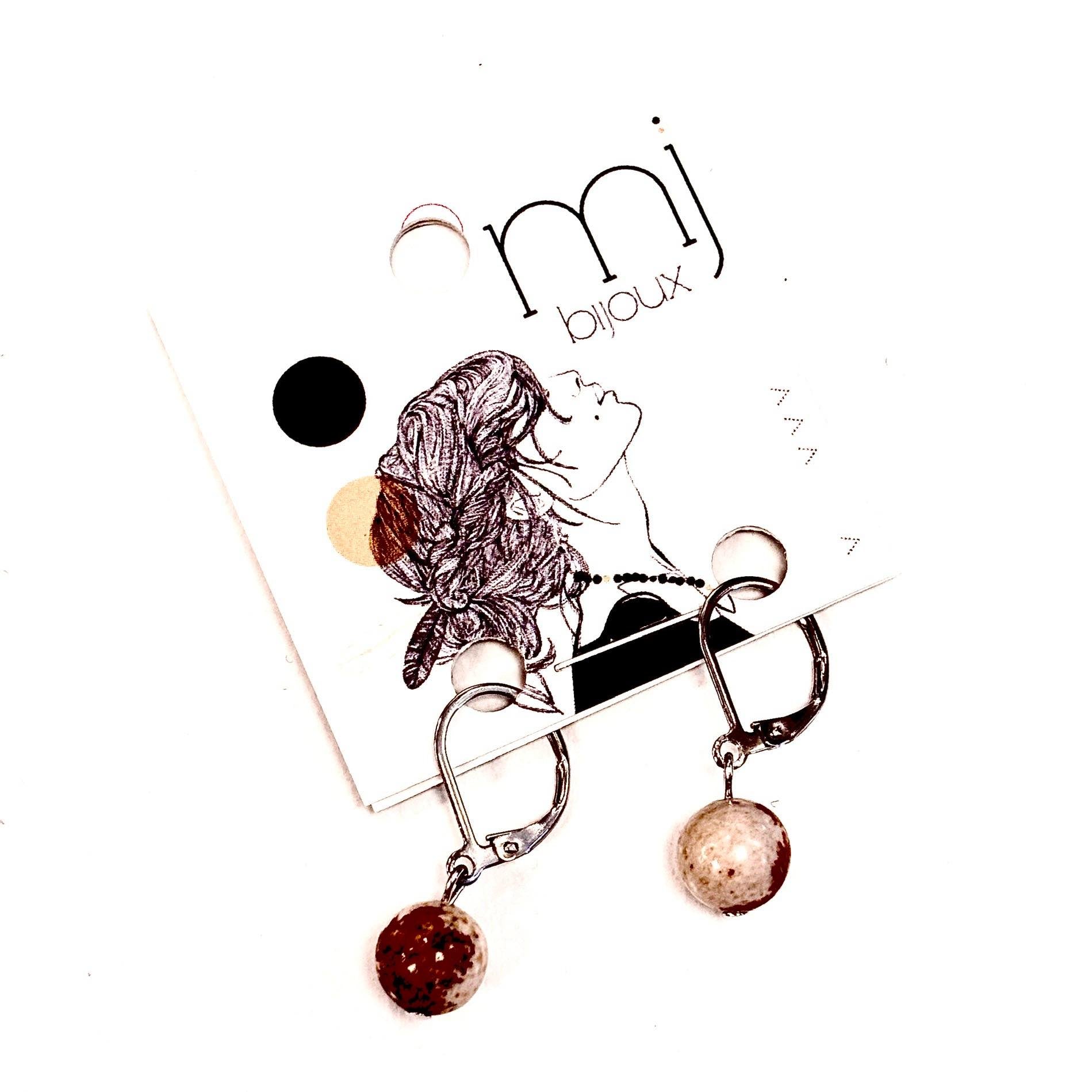 Boucles d'oreilles - Bille en pierre - Beige - MJ Bijoux
