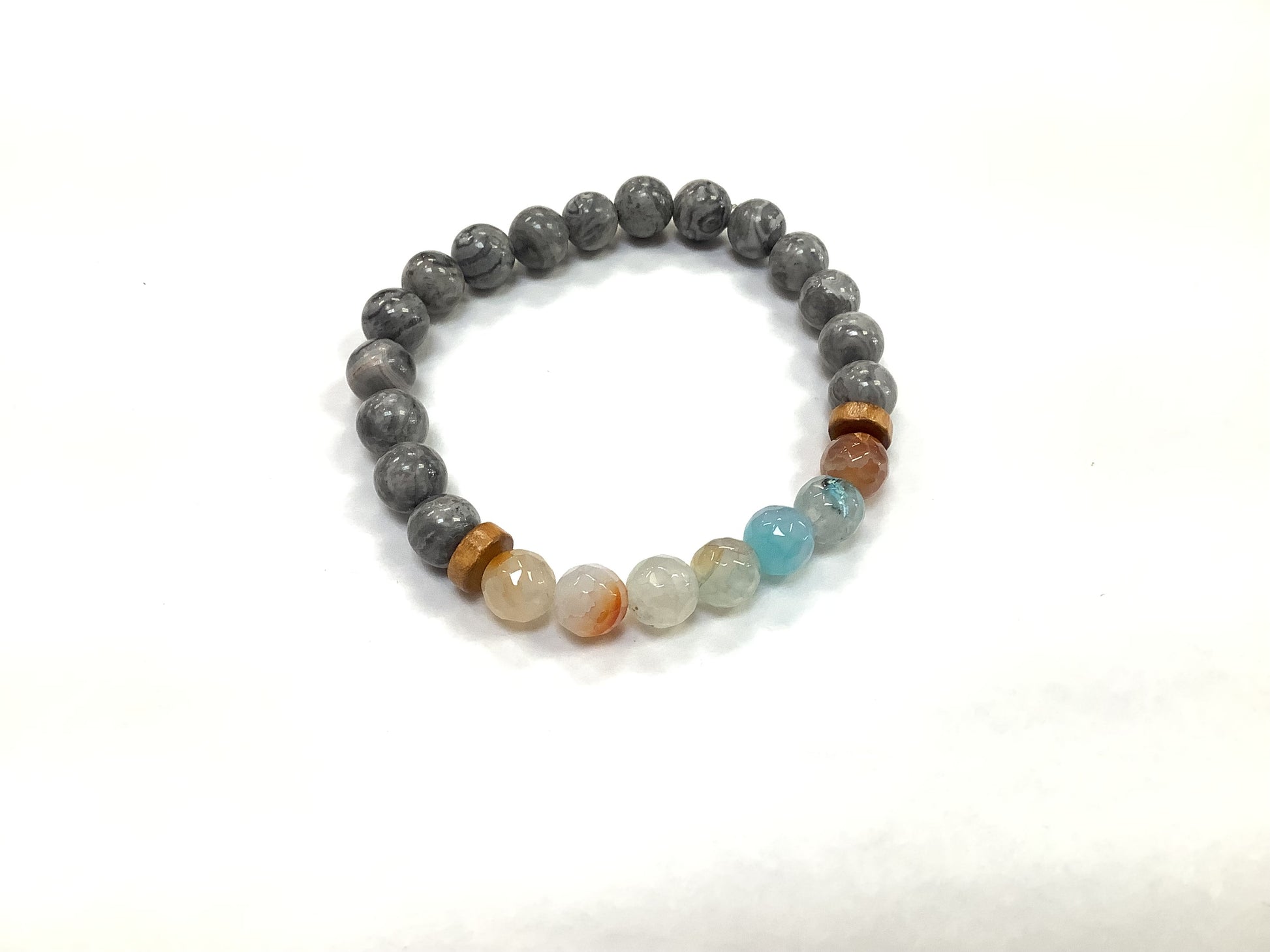 Joli bracelet de billes original fait de véritables pierres agrémenté de perles de bois ou de métal.