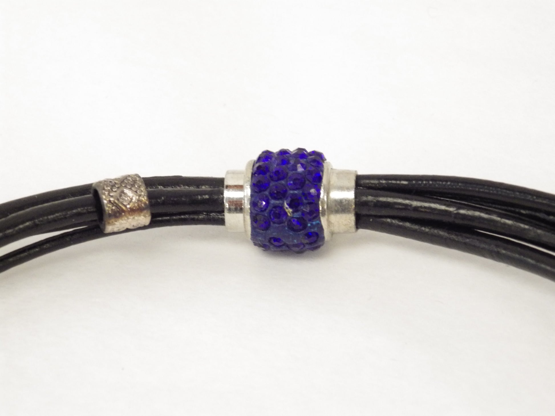 Attache aimantée avec cylindre et pièces coulissantes ce qui permet d'ajuster le placement de pièces sur le fil de cuir.