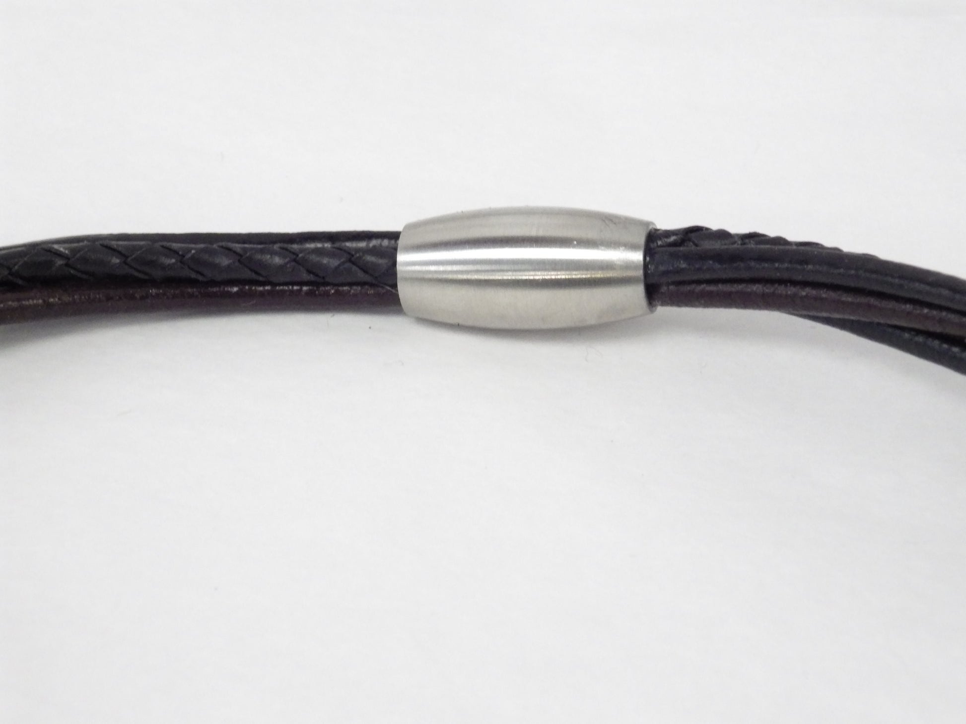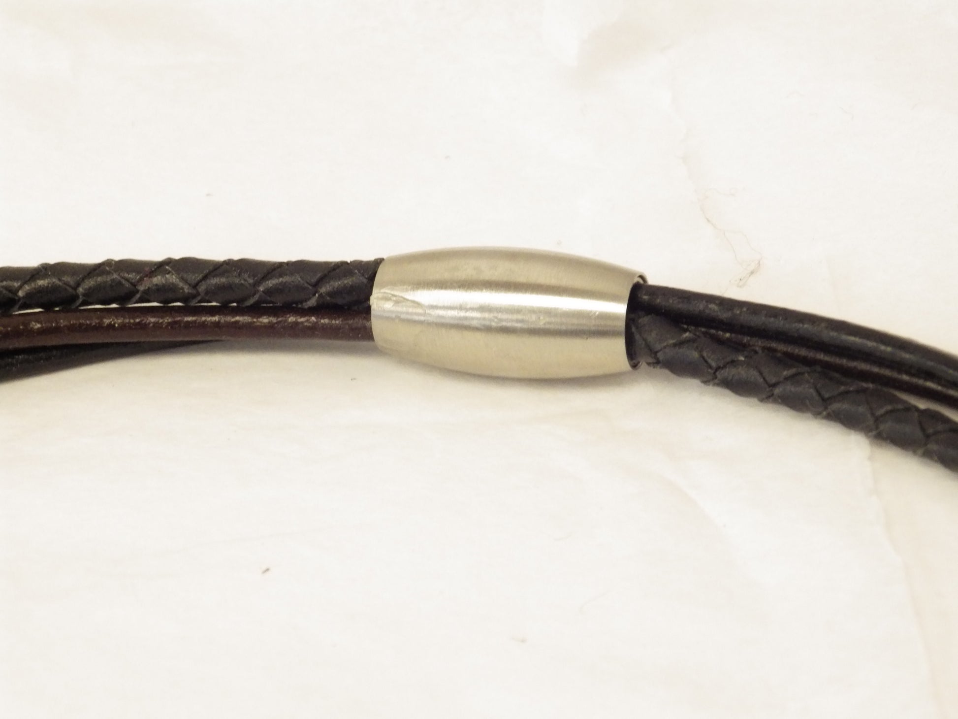 Attache aimantée avec cylindre et pièces coulissantes ce qui permet d'ajuster le placement de pièces sur le fil de cuir.