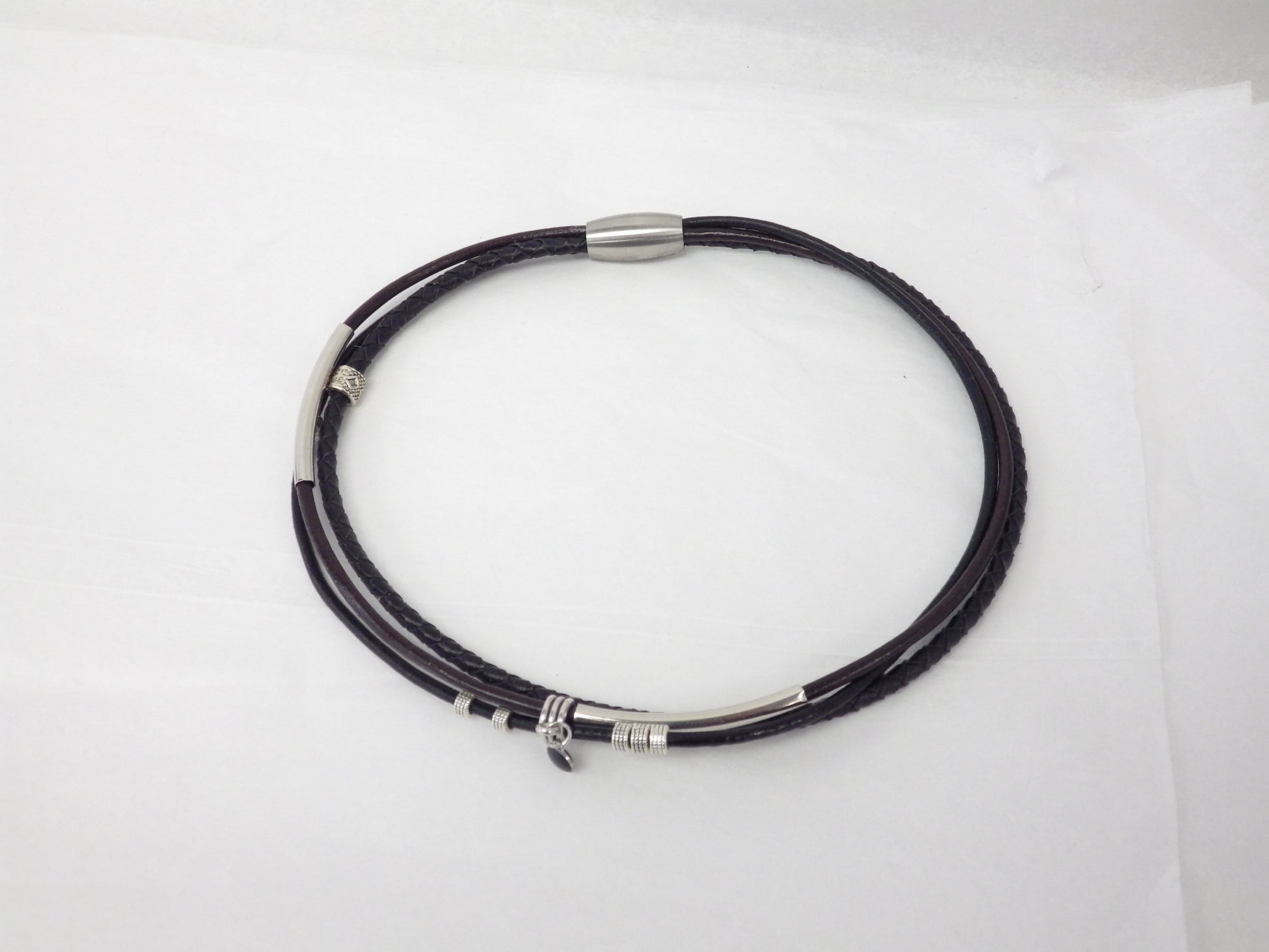 Collier/Bracelet avec file tresse noir et brun - MJ Bijoux