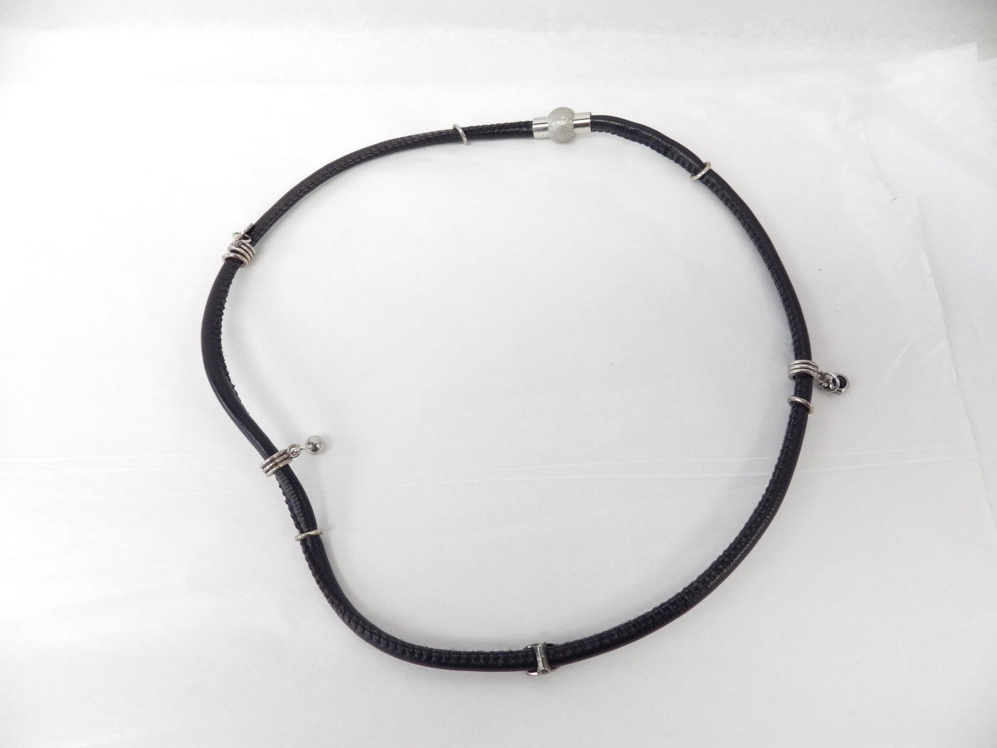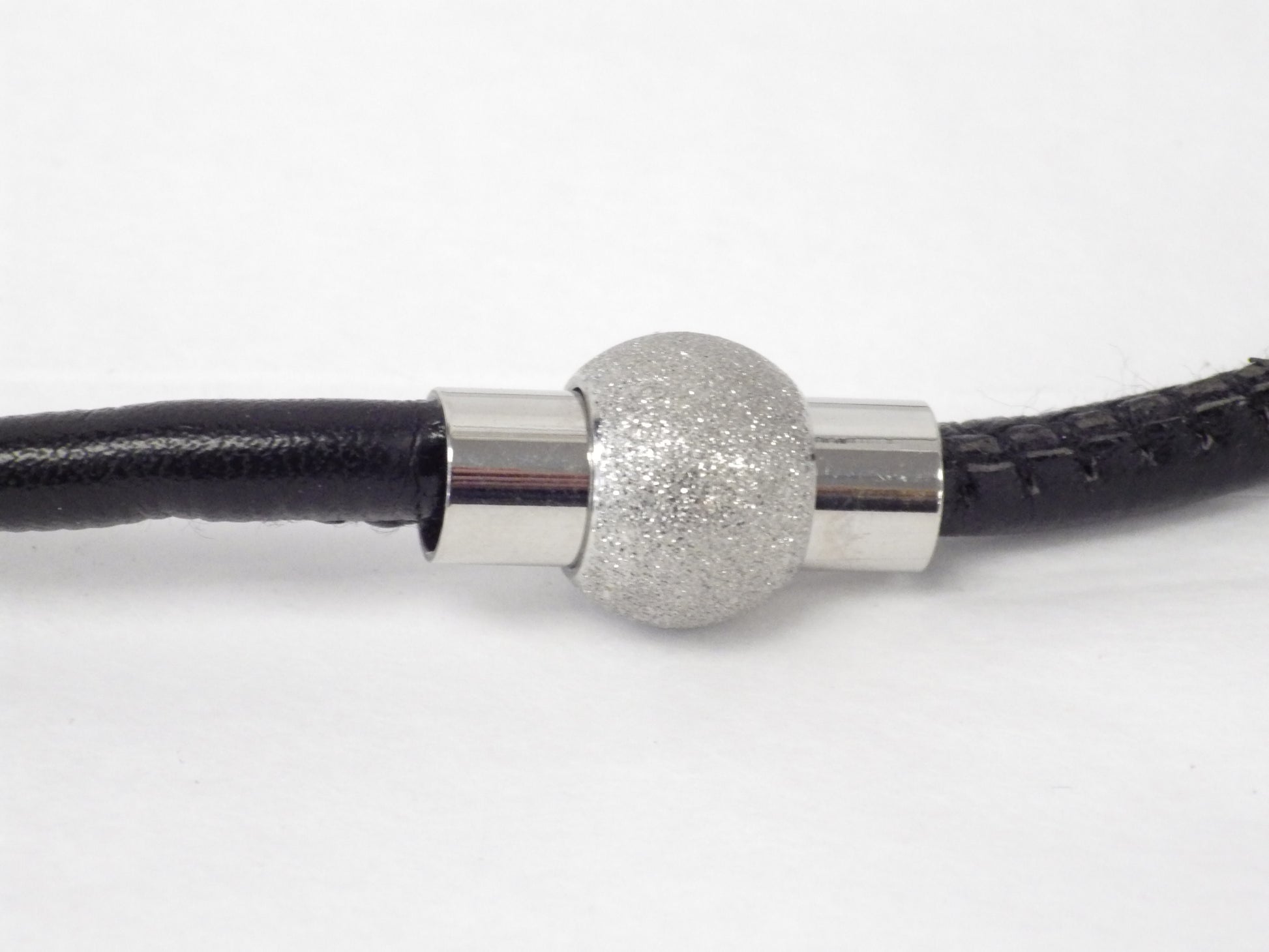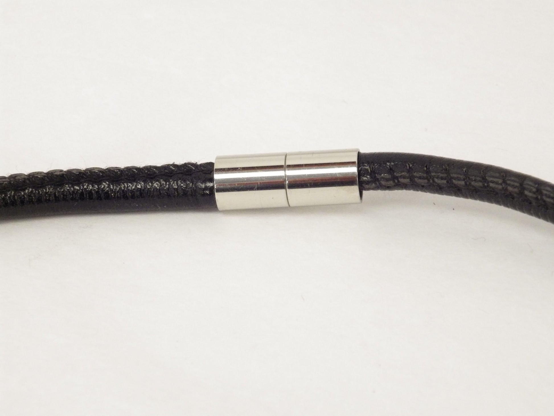 Attache aimantée avec cylindre et pièces coulissantes ce qui permet d'ajuster le placement de pièces sur le fil de cuir.