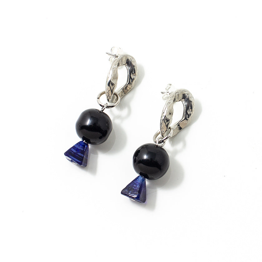 Le maillon en studs est un incontournable cette saison. Réinventé dans cette version longue où se succèdent une onyx et une délicate pyramide de verre coloré. Elles sauront vous accompagner tout au long de l’été. Fabriqué à la main en étain plaqué or 22 carats ou naturel.